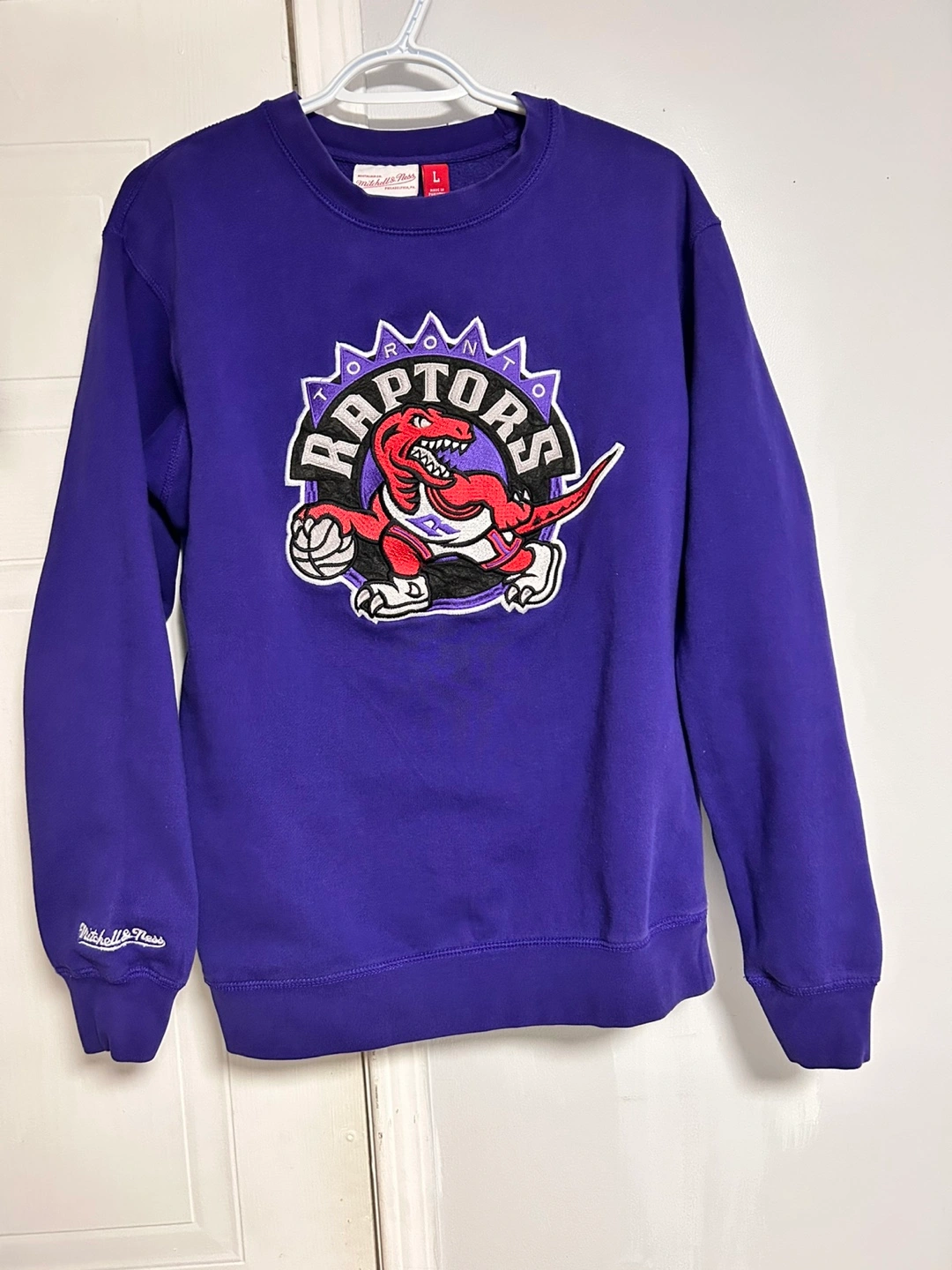 Selling a Mitchell & Ness Toronto Raptors crewneck sweater in size large! The colour is a vibrant purple and the Raptors logo is stitched on the front. It's in great condition and ready for a new home!