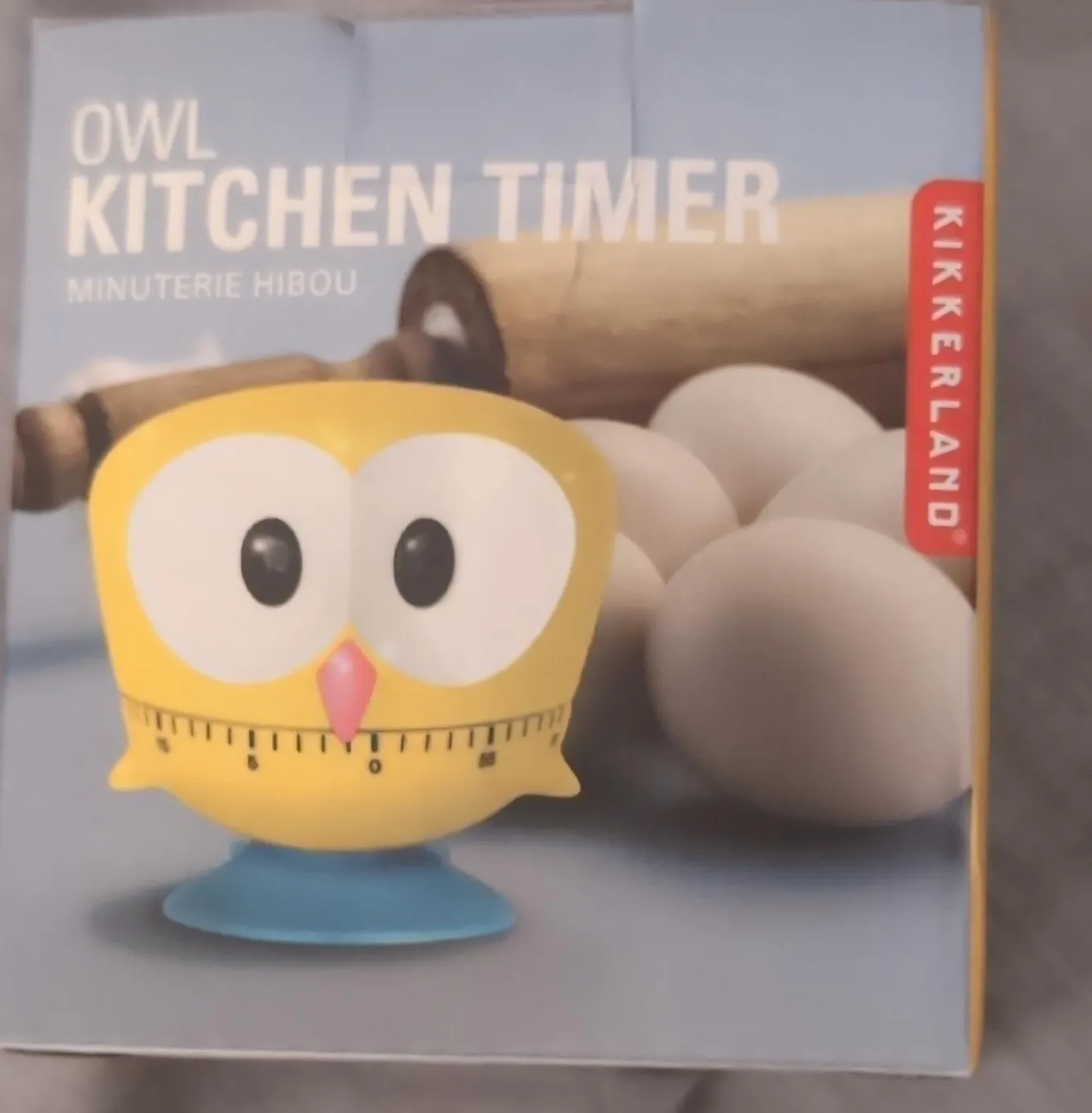 I'm selling a Kikkerland Owl Kitchen Timer. It's a cute and functional addition to any kitchen. The timer is easy to use and adds a touch of whimsy to your cooking routine. It would make a great gift for the owl lover in your life!