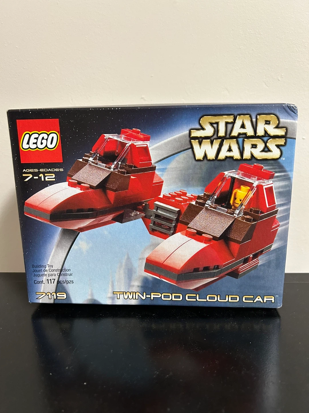 Selling a LEGO Star Wars set, the 7119 Twin-Pod Cloud Car! Brand new, never opened. Recommended for ages 7-12, it's a great addition to any Star Wars or LEGO collection. 117 pcs. 2002.