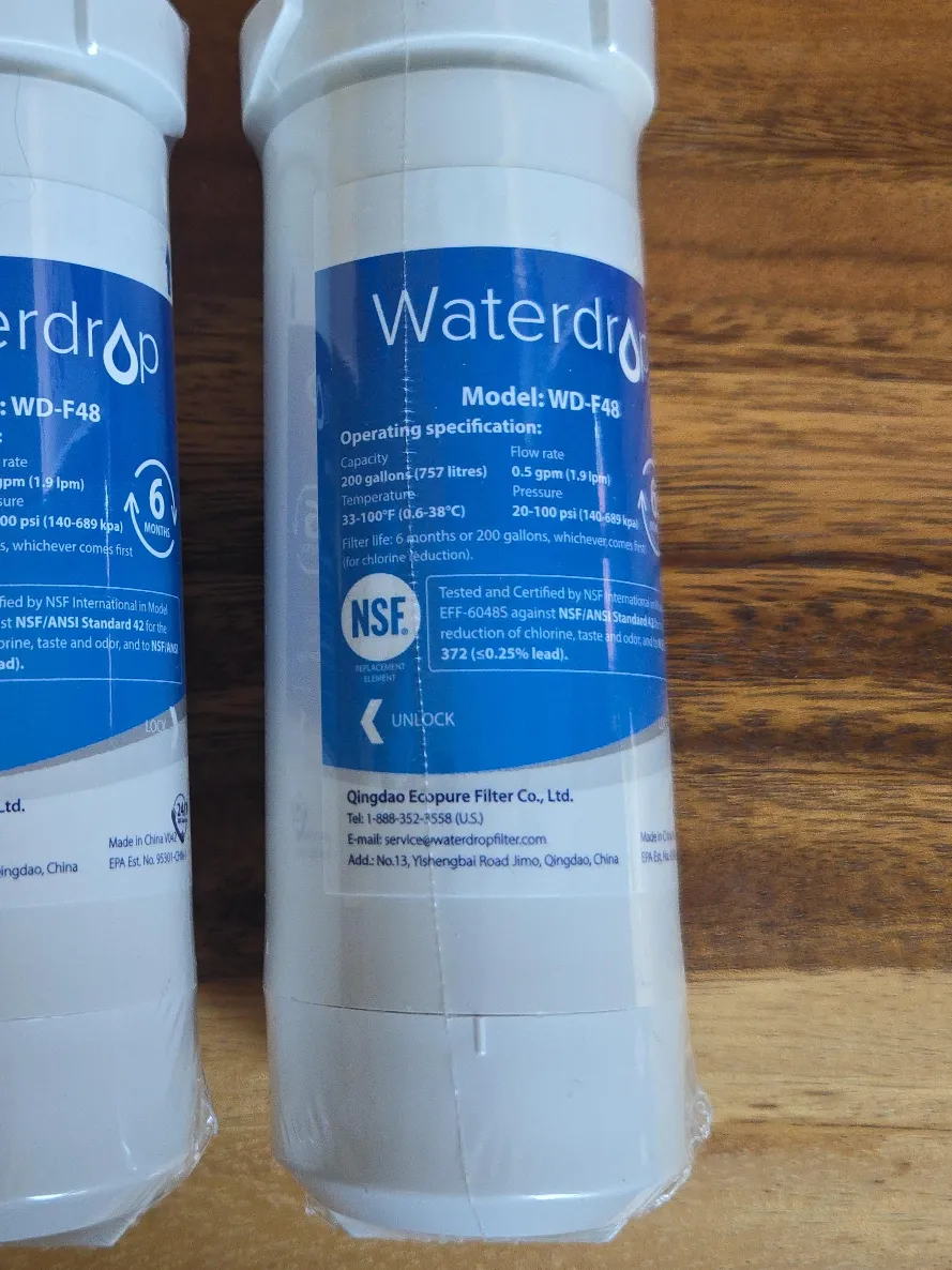Selling a Waterdrop WD-F48 water filter! It is designed to filter 200 gallons (757 litres) of water. The filter is effective for 6 months or 200 gallons, whichever comes first, for chlorine reduction
