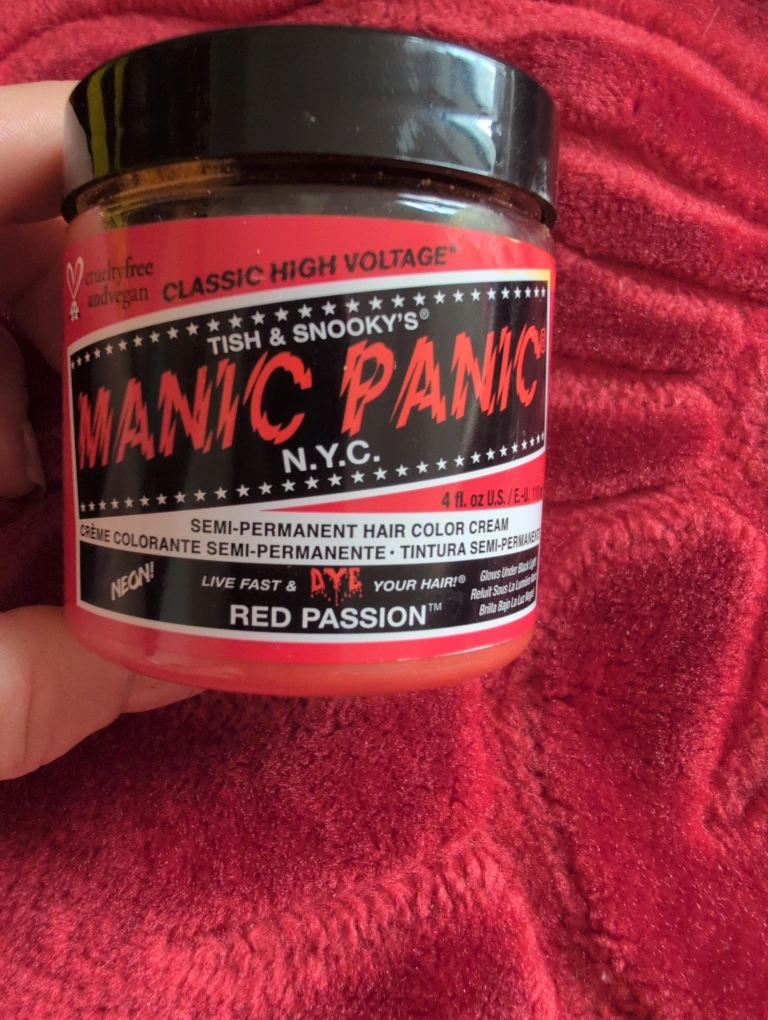982Get vibrant colour with Manic Panic's Classic High Voltage hair colour cream! This semi-permanent dye in Red Passion is perfect for adding a pop of bold colour to your hair. It's cruelty-free and vegan, so you can feel good about using it. I used it on the tips of my hair when my hair was blonde but now I have red hair so I don't need it. there's about 3/4 of the bottle left.