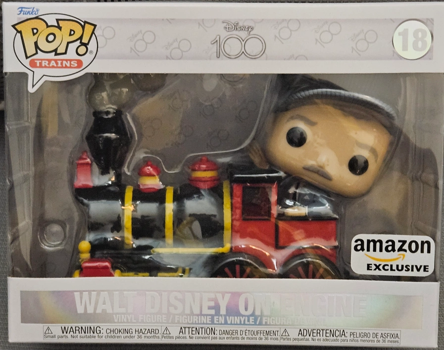 Selling a Funko Pop! Disney 100 Trains featuring Walt Disney on an engine. It's an Amazon Exclusive. The box is included, so it's perfect for collectors!