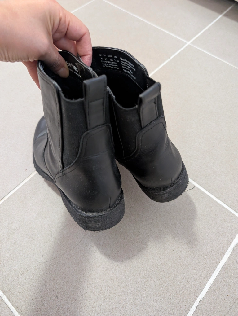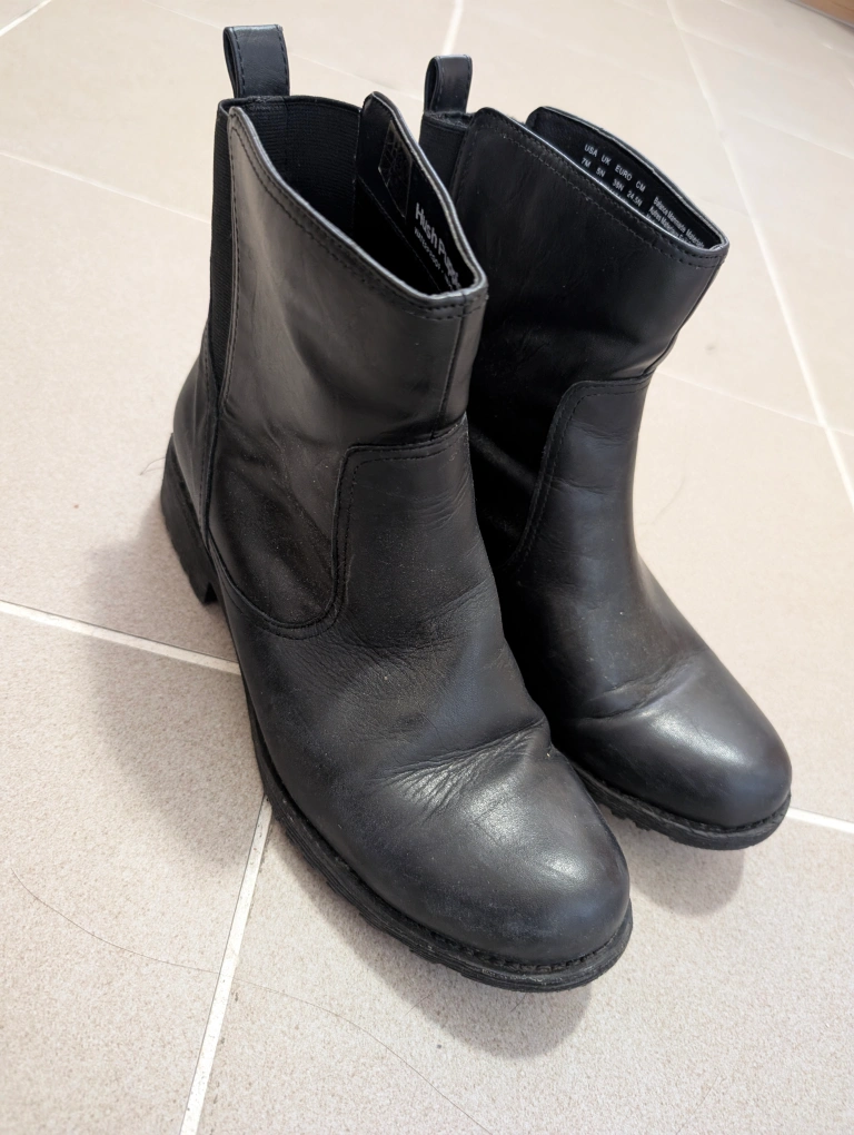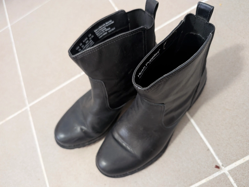 Selling a pair of Hush Puppies black leather ankle boots in size 7. They're in good condition, perfect for everyday wear!