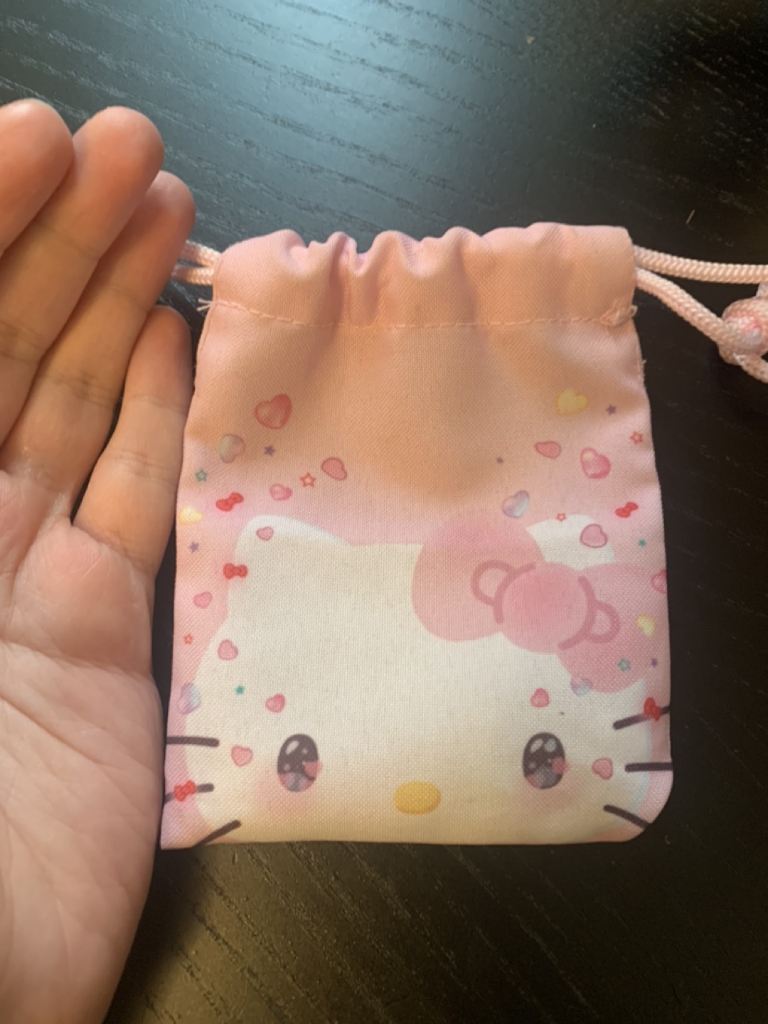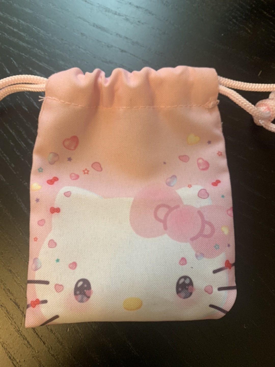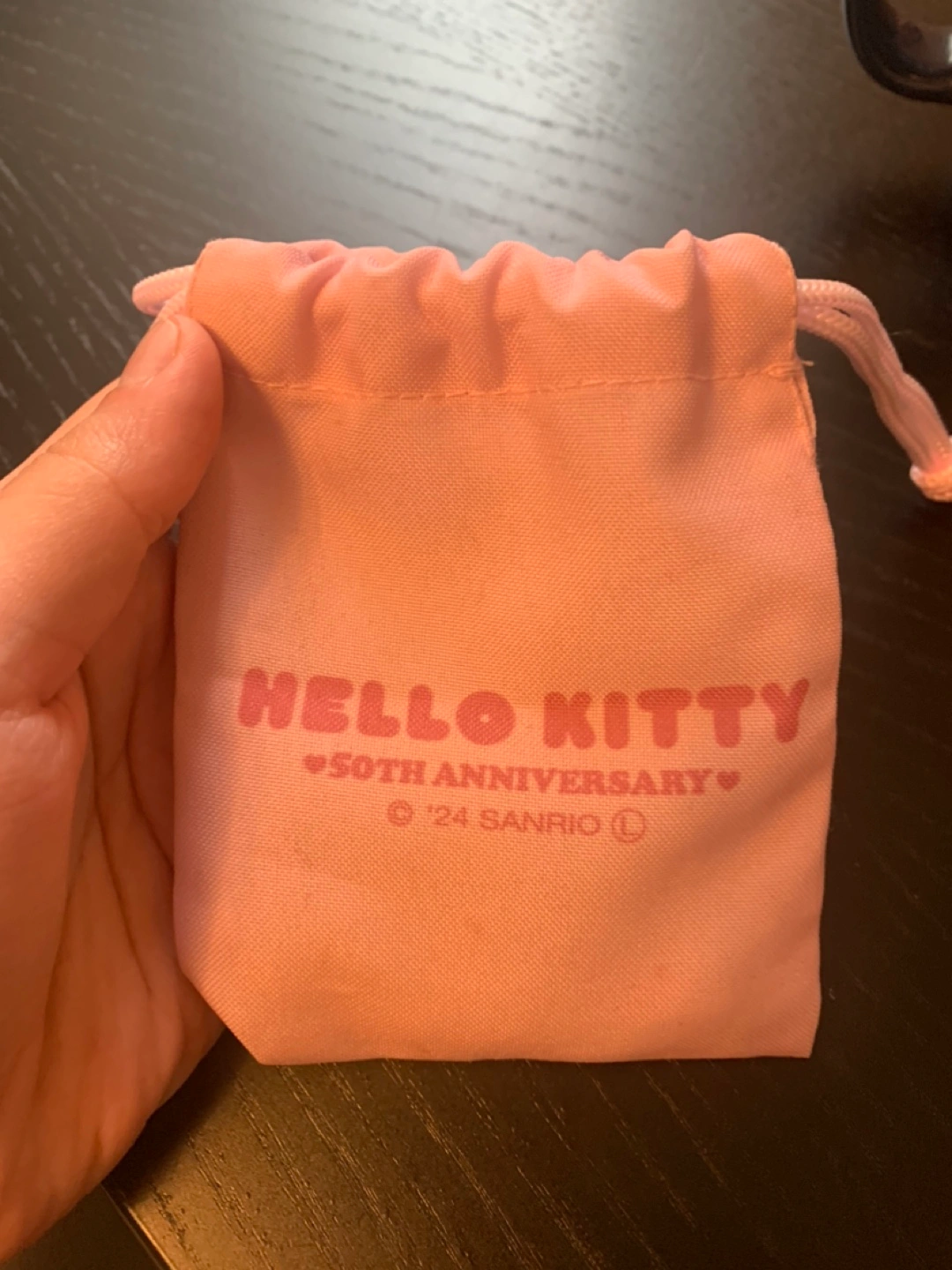 Super cute Hello Kitty drawstring bag celebrating the 50th anniversary! It's a sweet pink colour and perfect for storing small items or as a gift bag