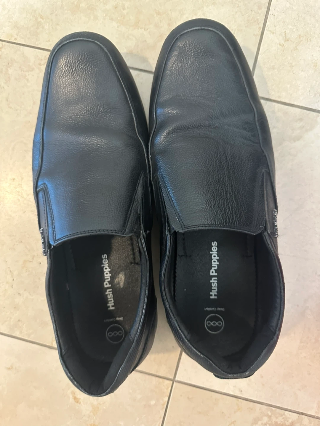 Selling a pair of Hush Puppies slip-on shoes in black leather. They're in great condition and very comfortable for everyday wear!