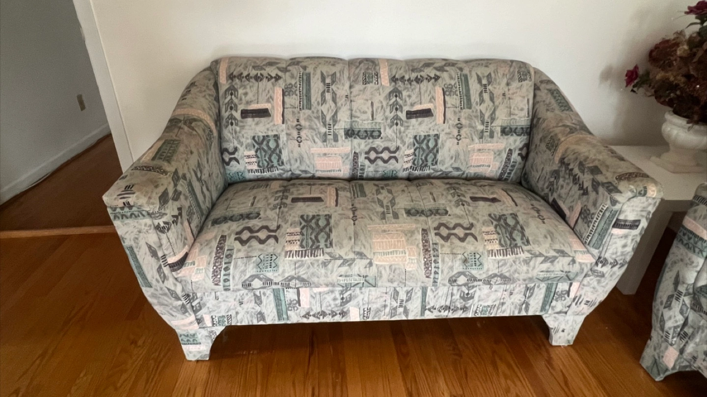 Selling a vintage loveseat and armchair set. They're in good condition and would be a great addition to any living room or den. The set features a unique patterned fabric that adds a touch of retro charm to your home decor. Perfect for creating a cozy and stylish seating area!