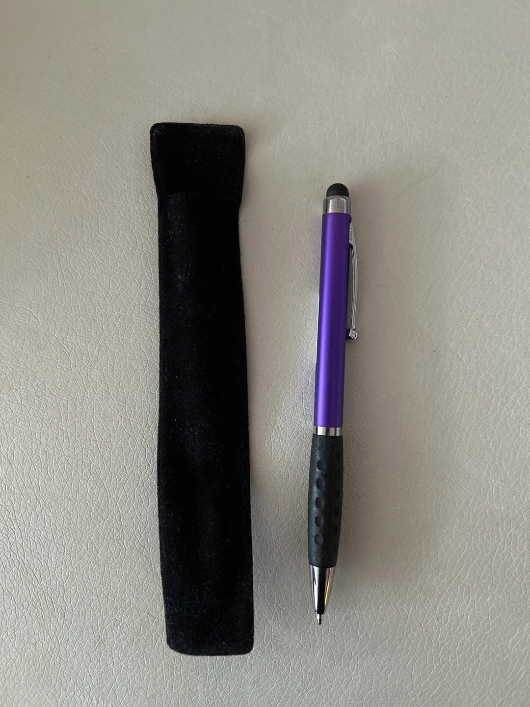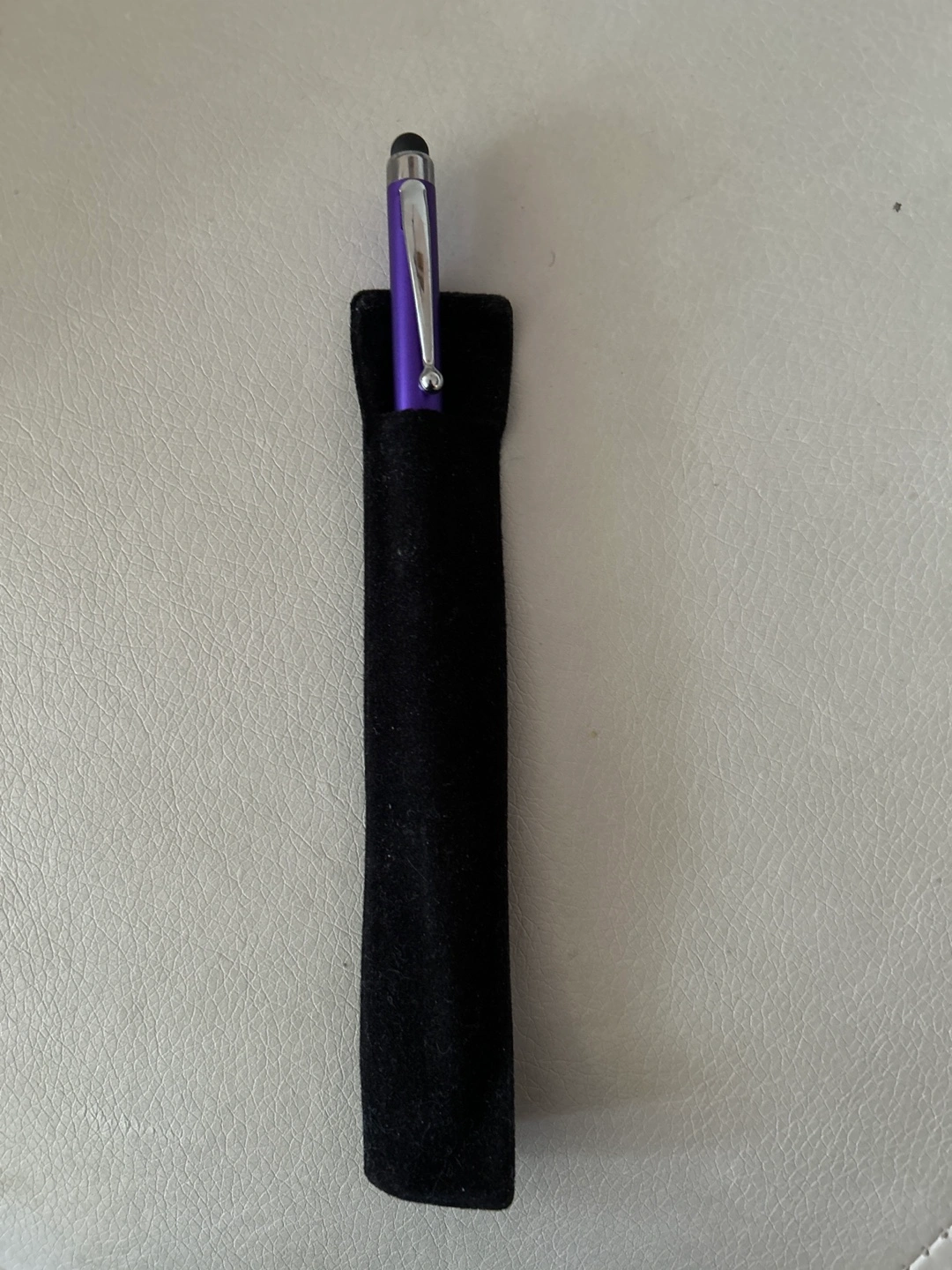 Here's a stylus pen that's perfect for your touchscreen devices! It comes with a handy black case to keep it protected when you're not using it. The stylus is a nice purple colour and has a comfortable grip. It's in great shape and ready for a new home.