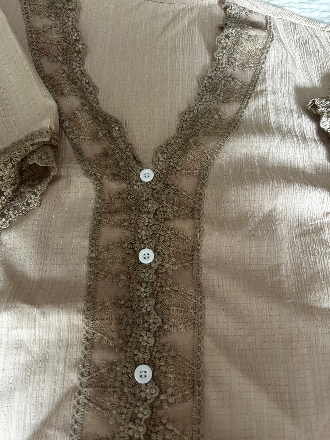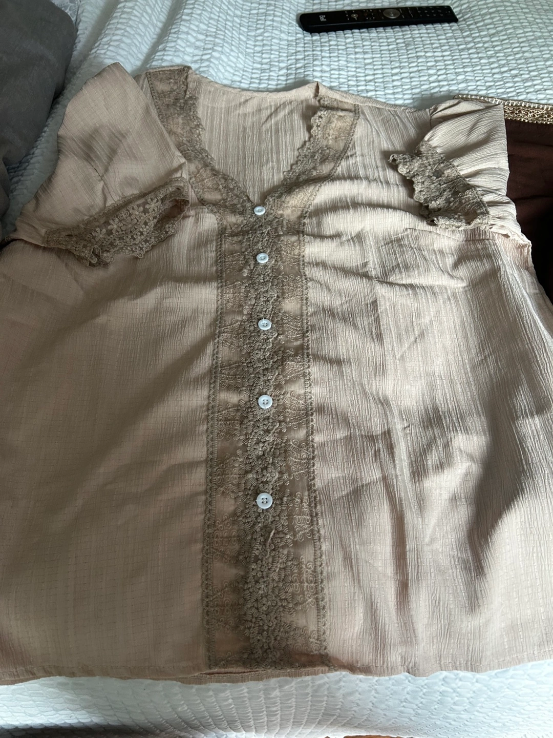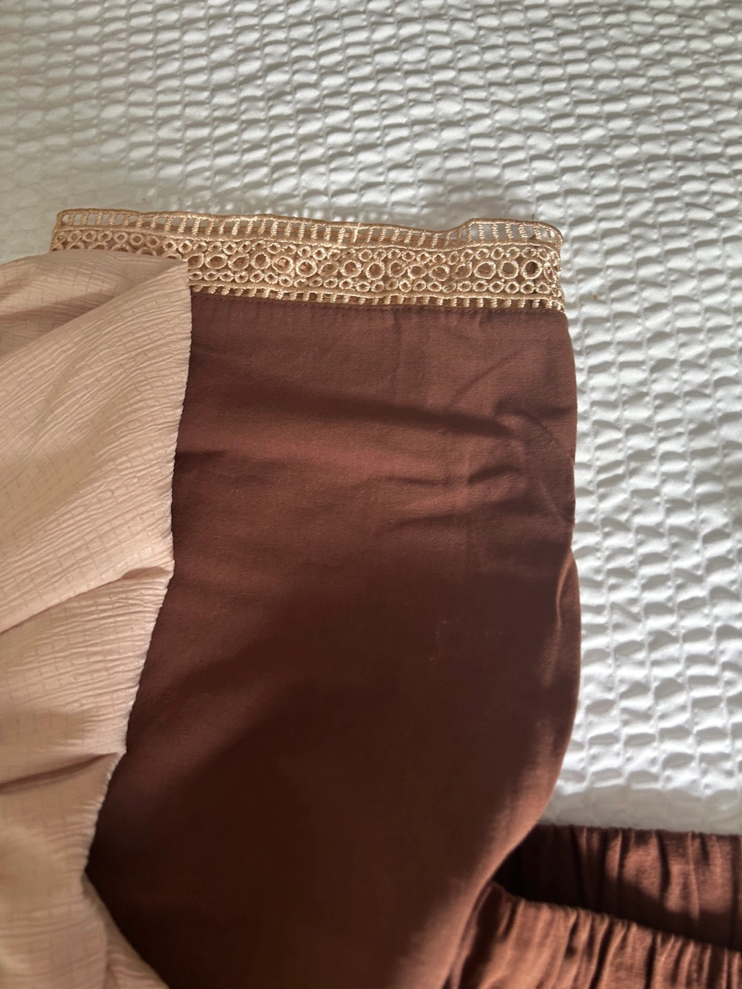 Brand new without tags size large A cute brown and beige outfit with lace detailing! Perfect for a casual day out or a comfy night in. The top features a V-neck and button-down design, while the pants have a drawstring waist for a comfortable fit. Pickup area Bayview and Sheppard.