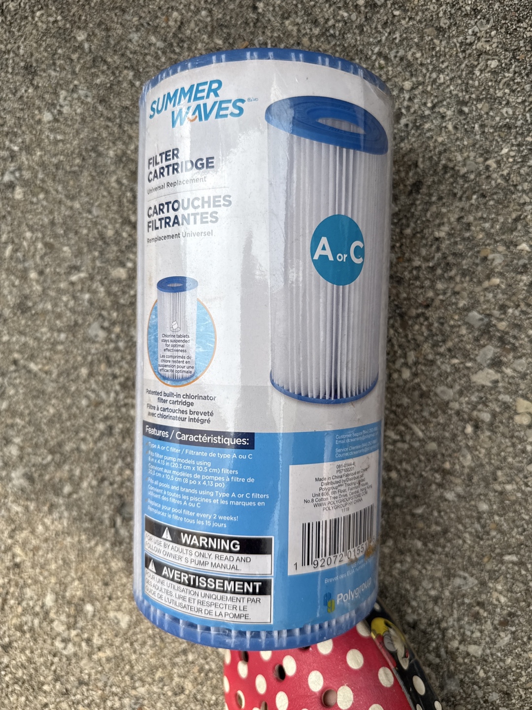 Keep your pool sparkling clean with this Summer Waves filter cartridge! It's a universal replacement type A or C filter, fitting filter pump models using 8 in x 4.13 in (20.3 cm x 10.5 cm) filters. Fits all pools and brands using Type A or C filters. Replace your pool filter every 2 weeks!