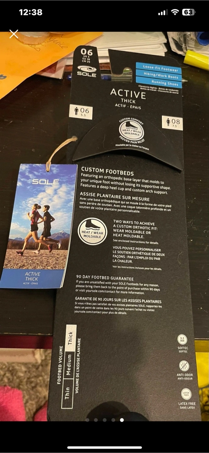 Get ready to upgrade your footwear with these SOLE Active Thick Insoles! Designed for custom comfort, they feature heat/wear moldable technology for a personalized fit. Perfect for hiking, work boots, or running shoes.