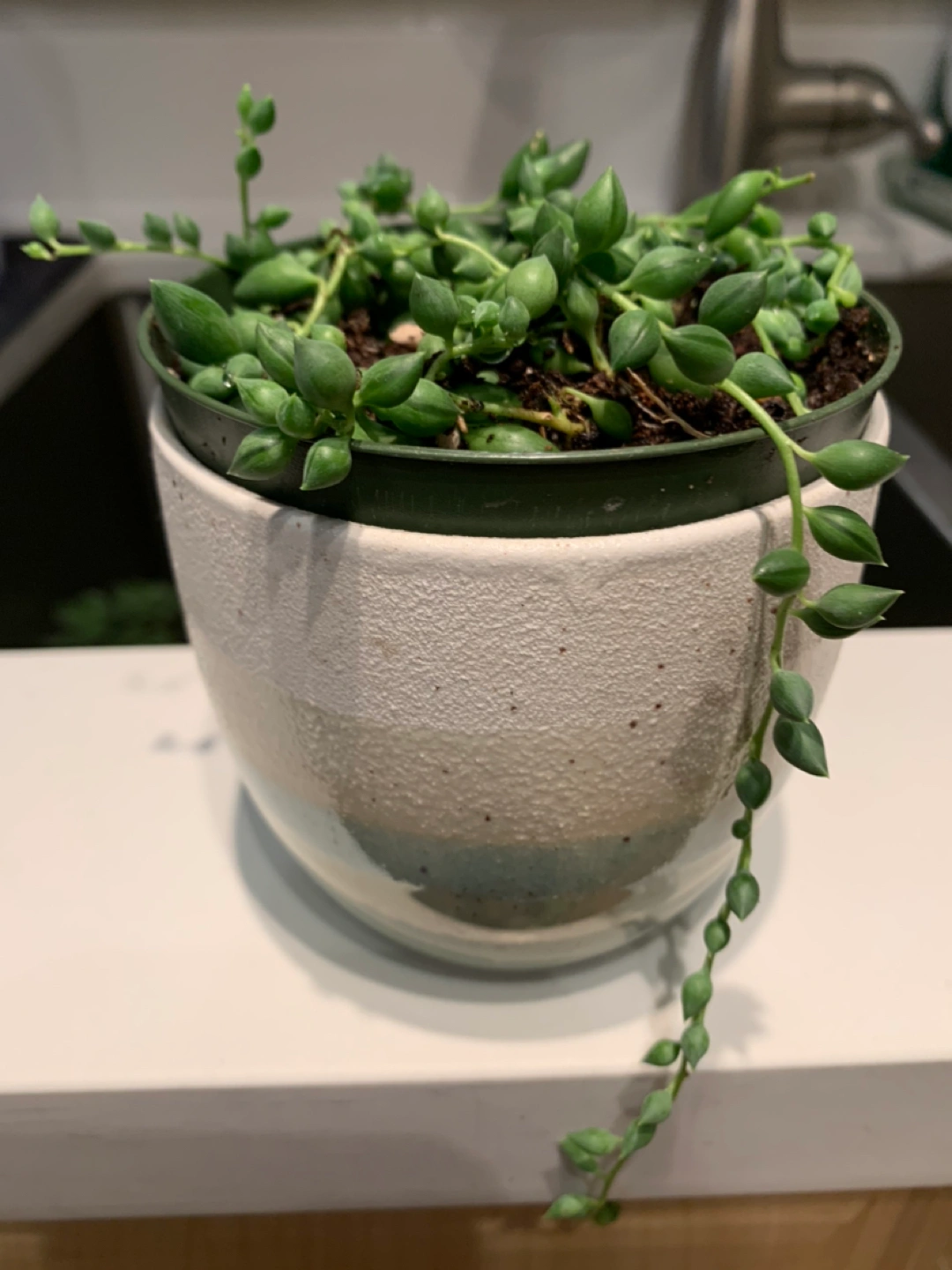 696String of tears is a lovely, cascading succulent that will add a little quirk to any home. These do great with bright indirect light and watering when dry. The ceramic outer pot was purchased at Tarra for $8. Can sell without outer pot for $12. This beauty is newly repotted and fertilized. Will last you for at least 6-12 months before needing to repot. Pick up around islington station!