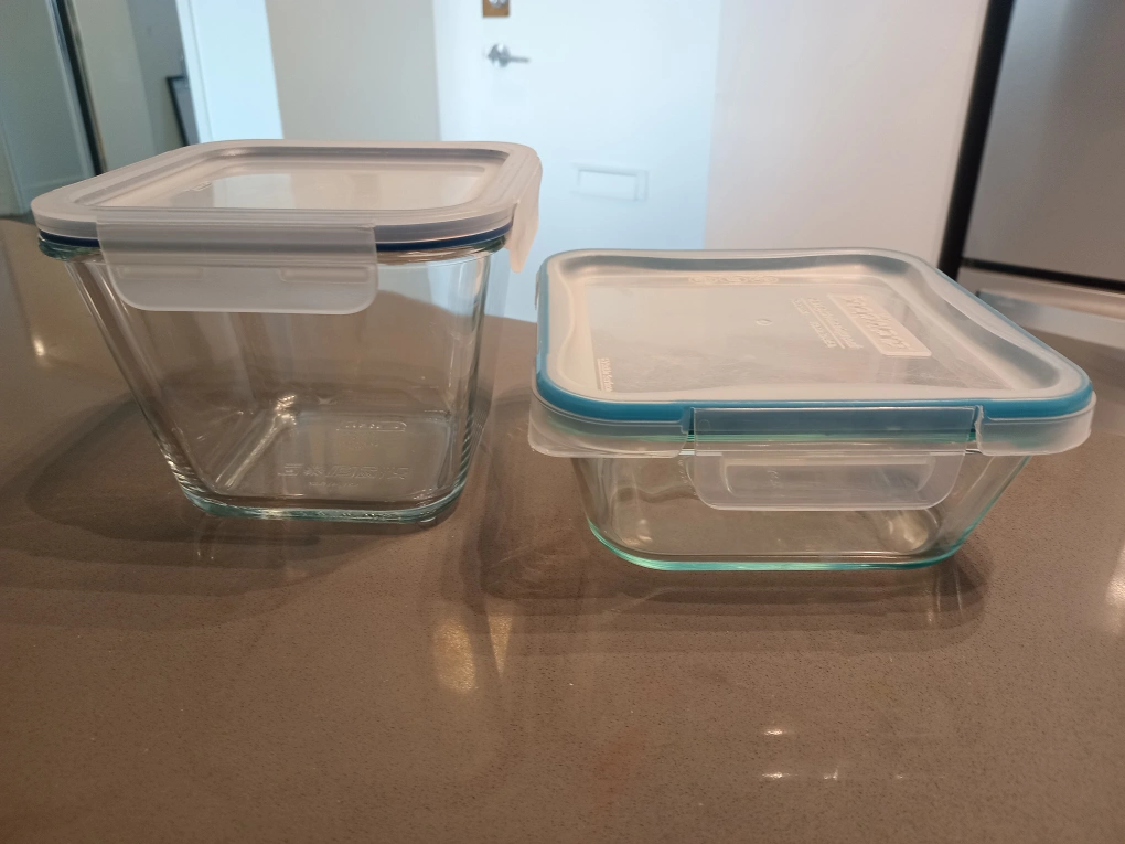 Selling two glass food containers! One is from Snapware and the other is from IKEA. Both are in great condition and perfect for storing leftovers or packing lunches. They're both airtight and leakproof, so you don't have to worry about spills!