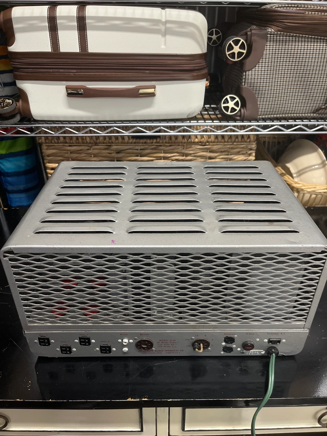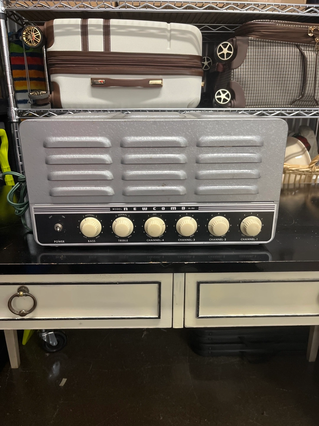 Selling a vintage Newcomb H-50 PA. Perfect for a guitar amp conversion project. It has a classic silver-grey finish and is in excellent condition for its age. Perfect for collectors or anyone looking for a unique piece of audio equipment!