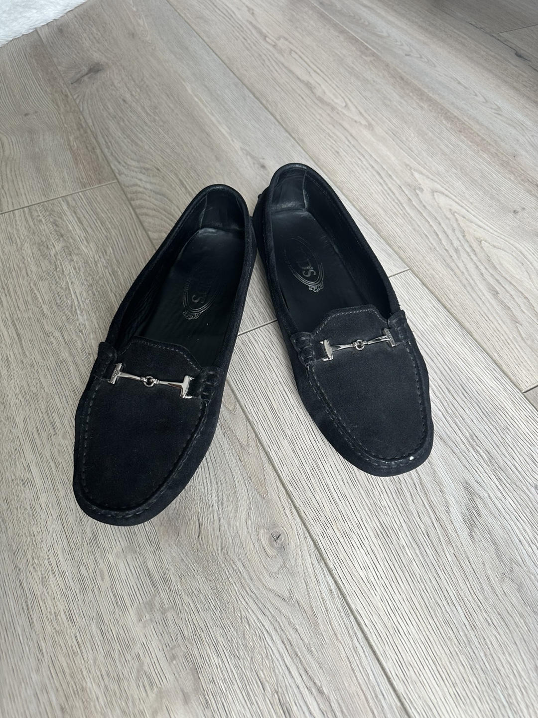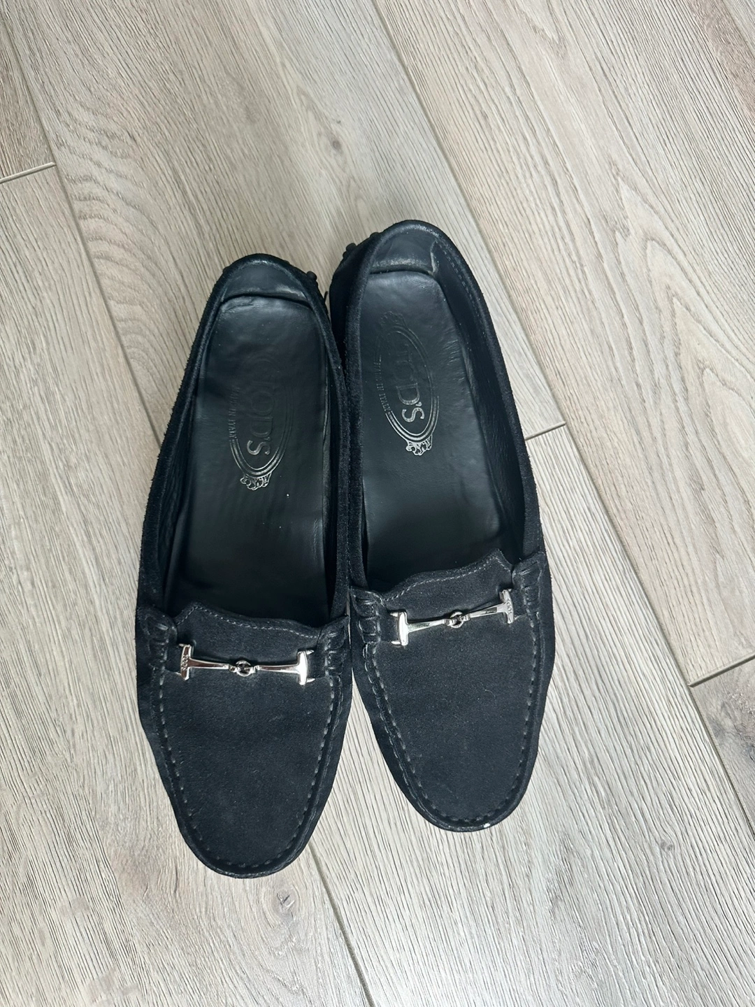 Selling a pair of Tod's loafers in black suede. They are still in great condition and are a size 39.5 fits US9.5. These are a classic and stylish shoe that would be a great addition to any wardrobe.