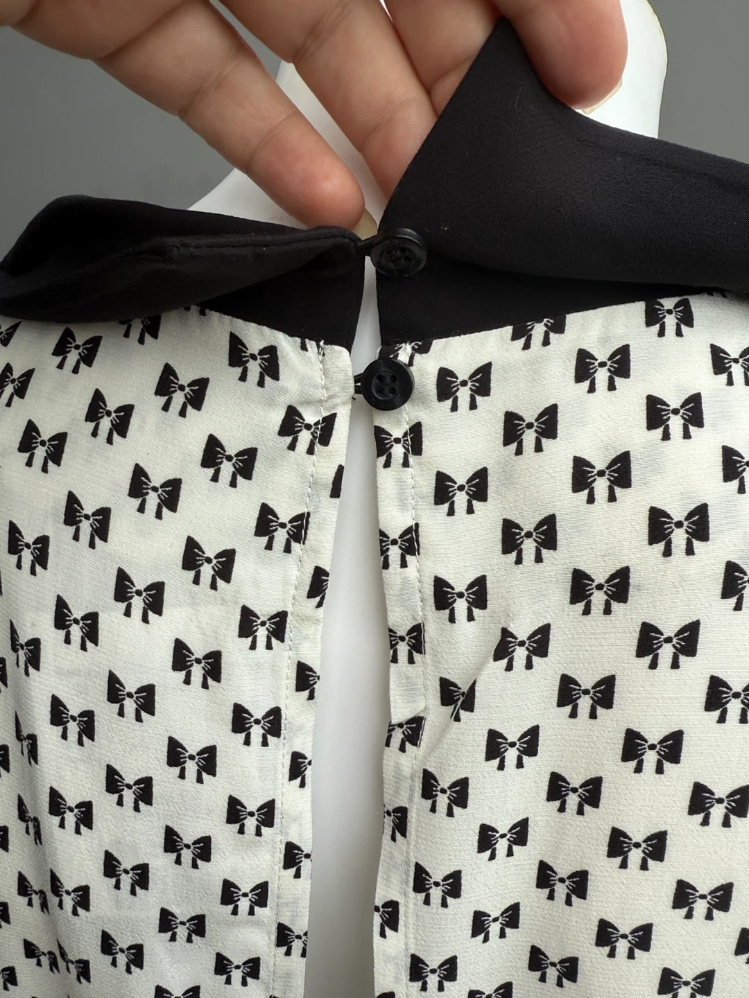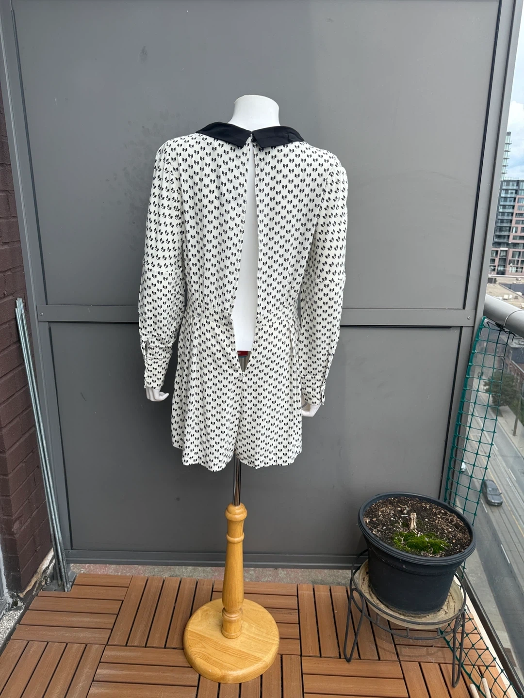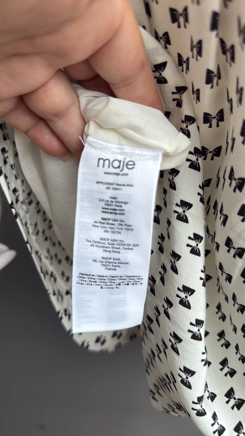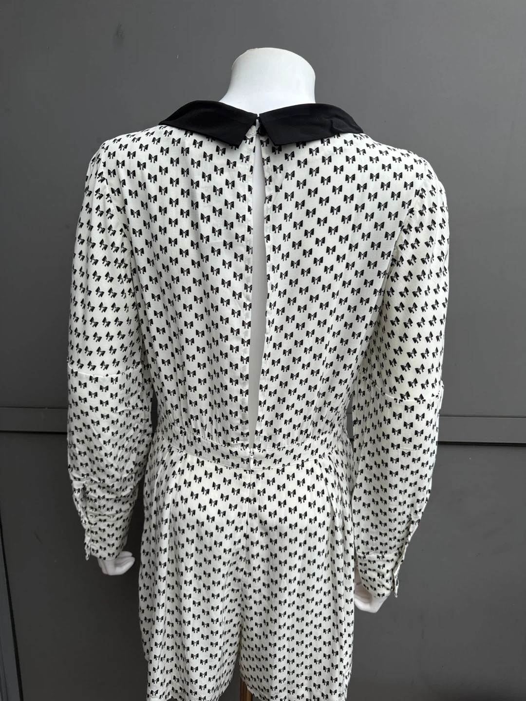 153Cute jumper with a bow print pattern! Side pockets, zipper at the back.It features a black collar and bow detail at the front. Perfect for a fun and stylish look. Size 38. New with tags.