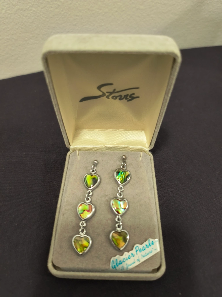 These are beautiful heart drop earrings from Storus Glacier Pearls. They come in their original box, perfect for gifting or keeping them safe. A lovely addition to any jewellery collection!