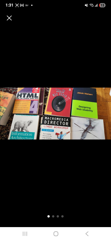 Selling a collection of books related to web design and multimedia software. Great for students or those looking to expand their knowledge in these areas! Includes books on HTML, Macromedia Director, Javascript, Flash, Photoshop, and more