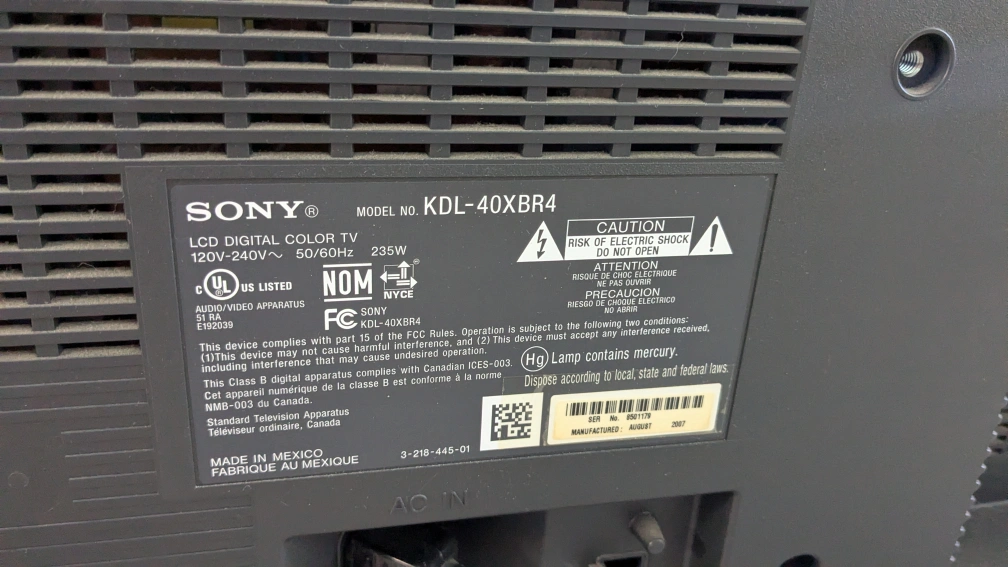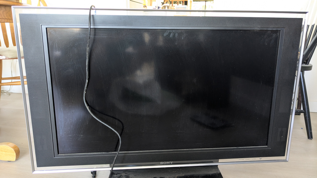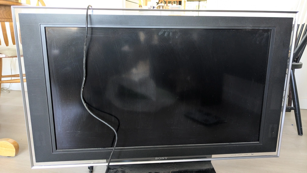 Selling a used Sony Bravia TV. It has some signs of wear, but it's still in working condition. Perfect for a spare room or cottage! Heavier older first generation flat screen TV.