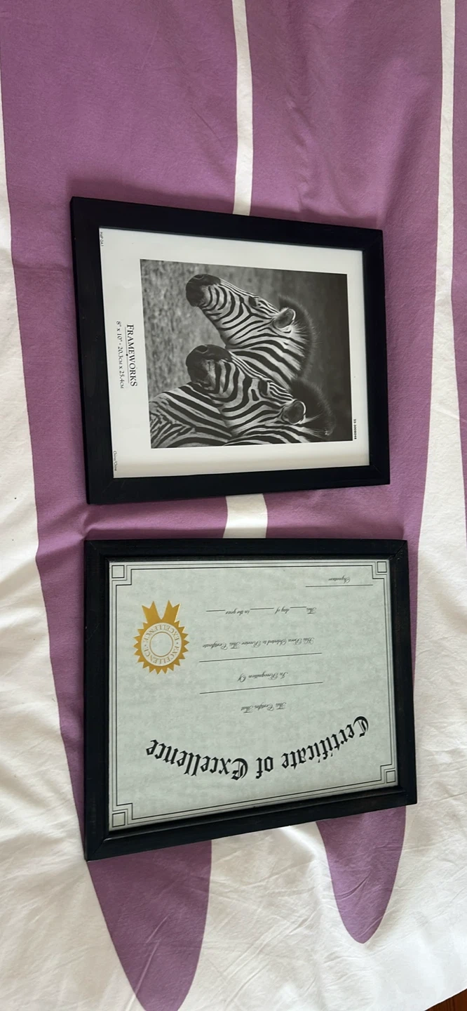 Black wooden frames dimensions are 8 x 10 and 8 x 10.5
