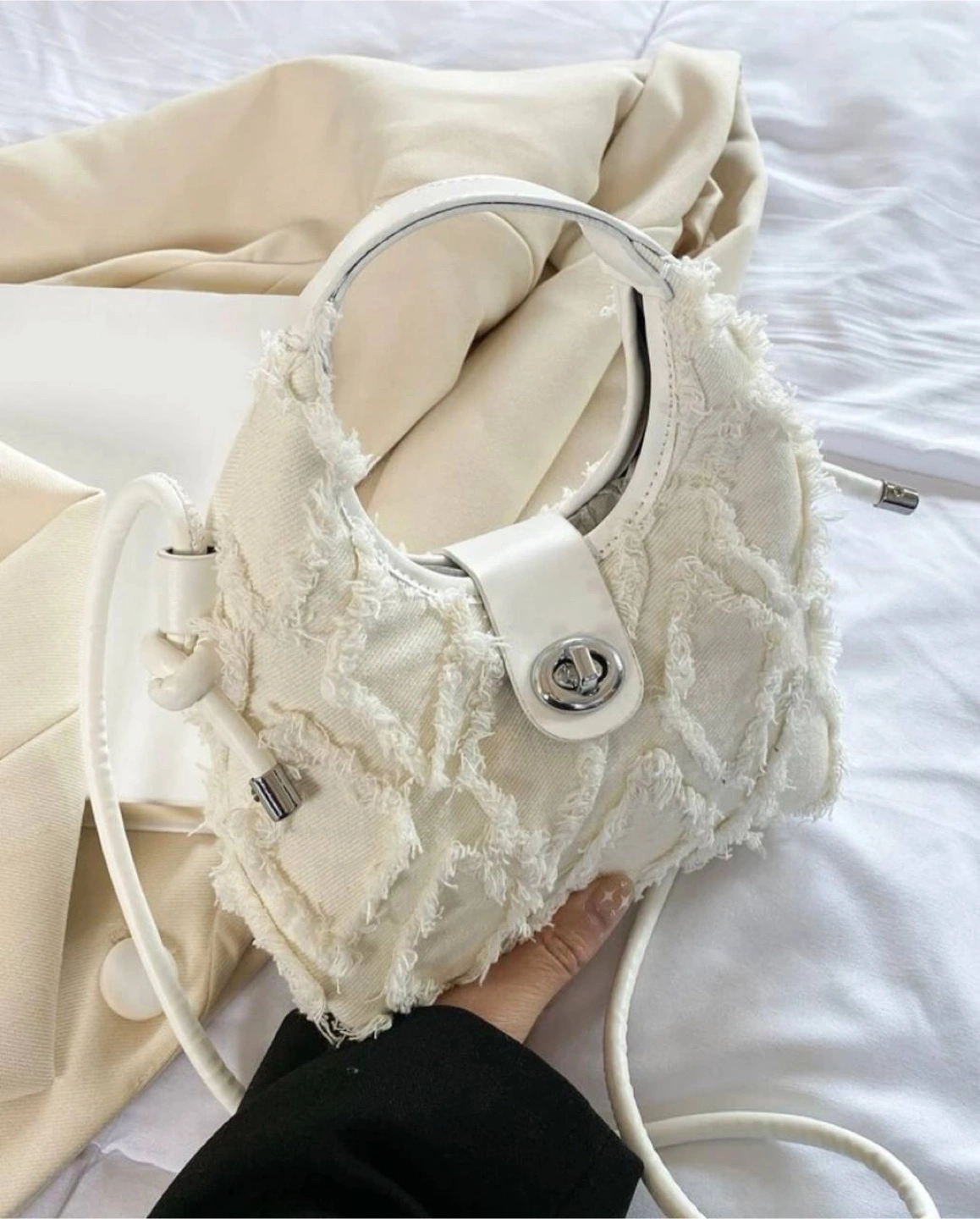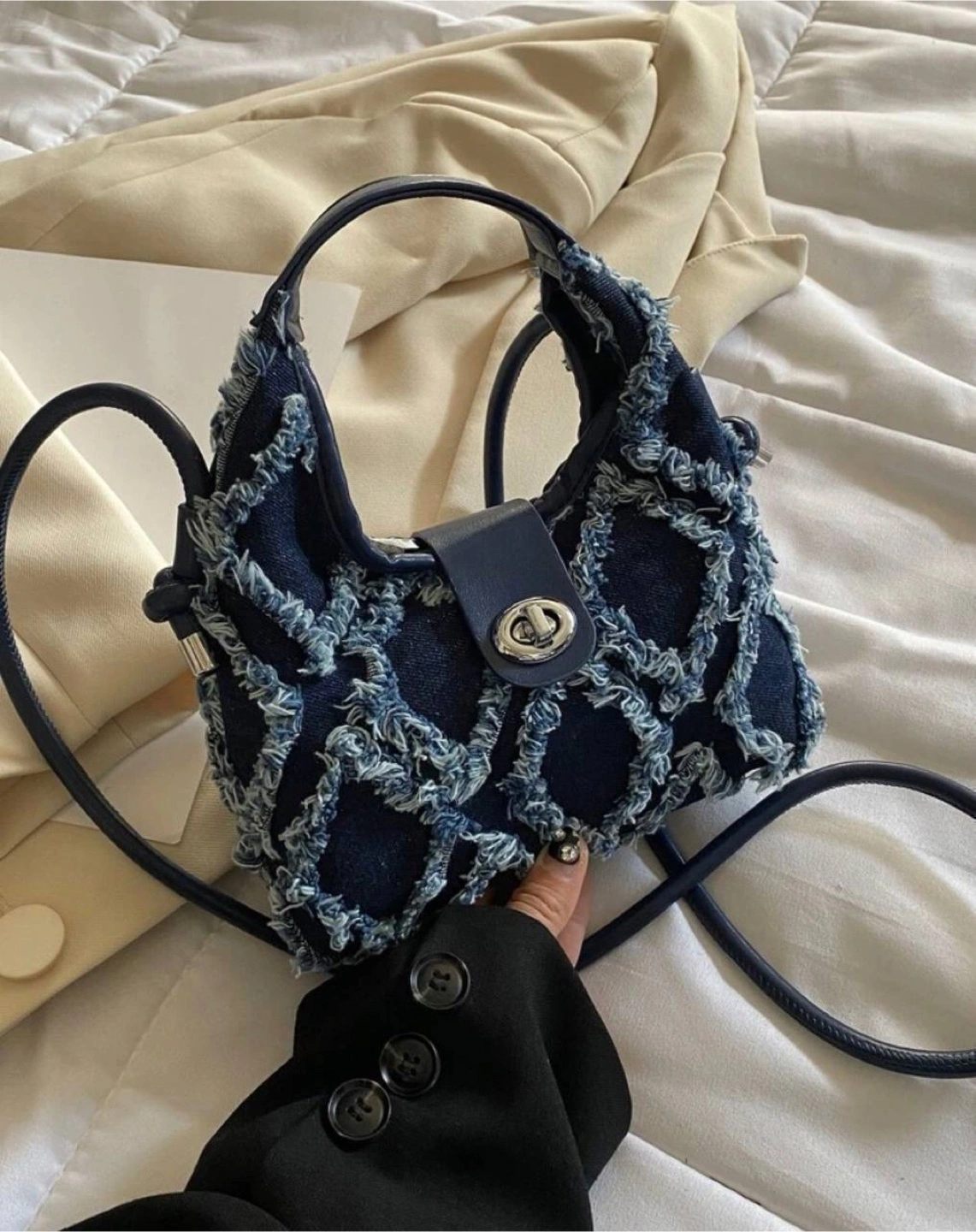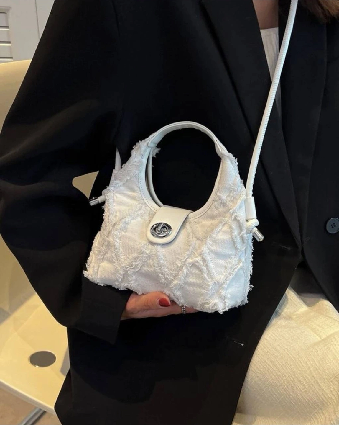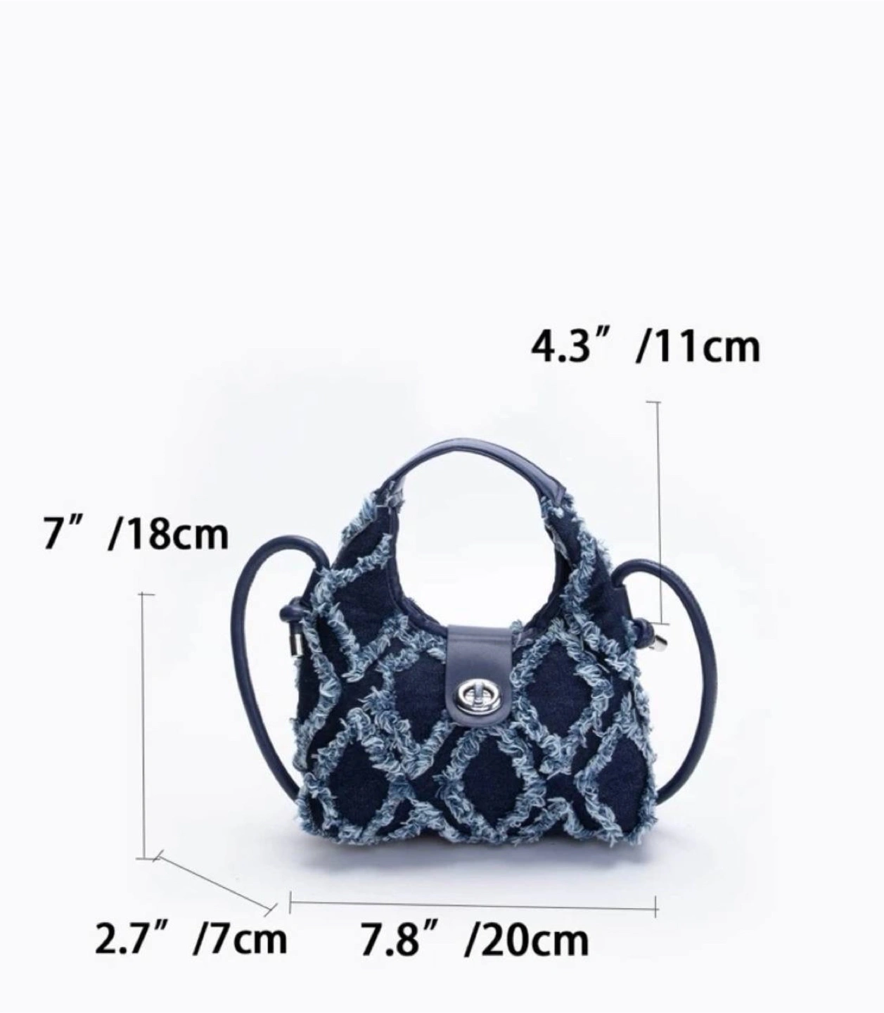 1000+✨ Big Sale! Final price. Extra discount only for bundles of 5+ items 🛍️ Please message me if you’re interested — I’ll organize a quick pickup 🚗 Check out my other listings too! ❤️ 📍Pickup: St. George, Sheppard W., Victoria Park, High Park (TBD) ✅Description: New item with no issues Adorable mini shoulder bag. Features a frayed denim exterior with a unique diamond pattern. Small but roomy. Top handle and adjustable shoulder strap. Metal clasp closure. Available in white and blue. Price for 1