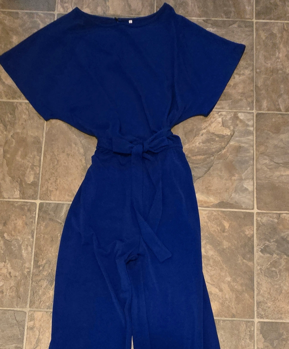 This is a lovely royal blue colour maxi romper that features a tie at the waist. It's perfect for a casual day out or dressing up for an evening event. The material is soft and comfortable, Size large. Worn once. PU Fort Saskatchewan