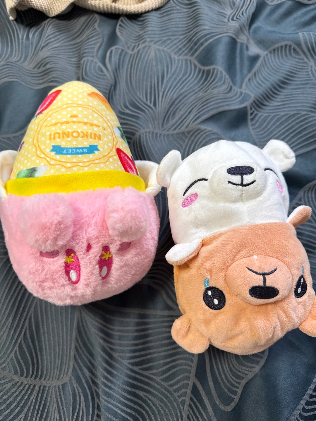 Selling these cute Nikonin Sweet plush toys! They're in great shape and ready for a new home. One is pink and yellow, and the other is white and brown. Perfect for kids or collectors!