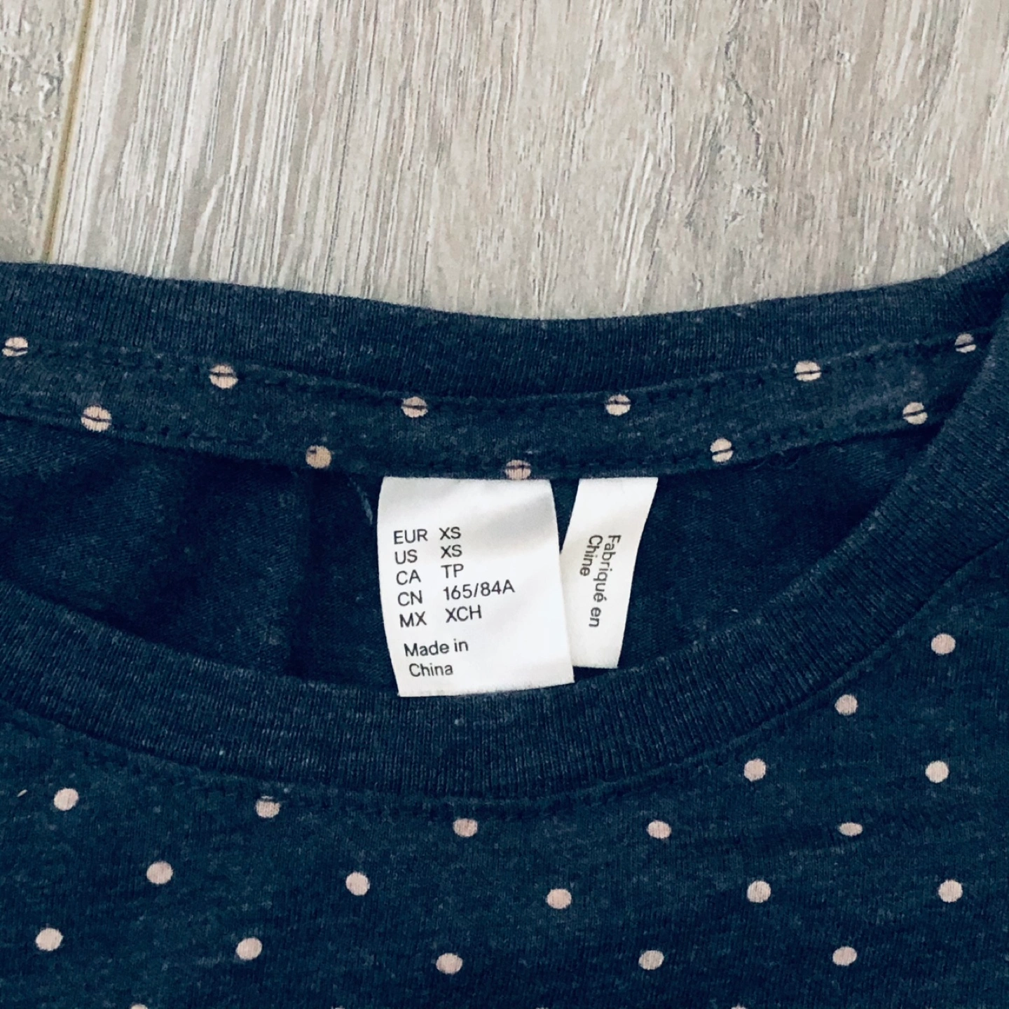 166Selling a H&M t-shirt with a polka dot pattern. It's a size XS and in great condition. Perfect for everyday wear!