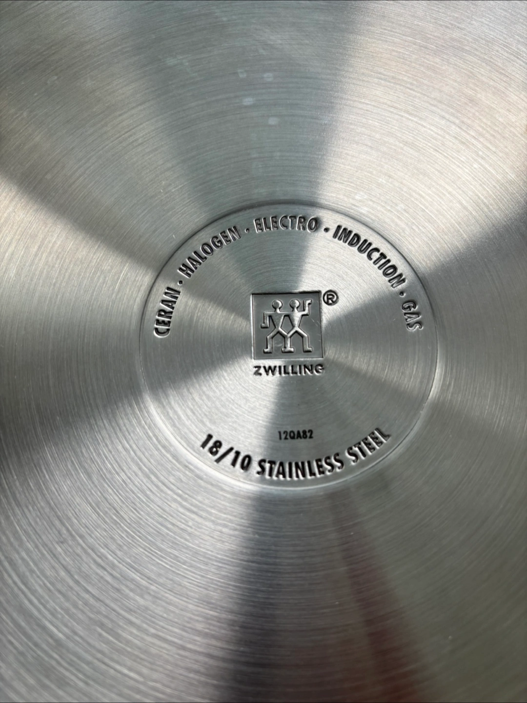 It's a 5-quart (5L) pot with a glass lid. The pot is made of 18/10 stainless steel