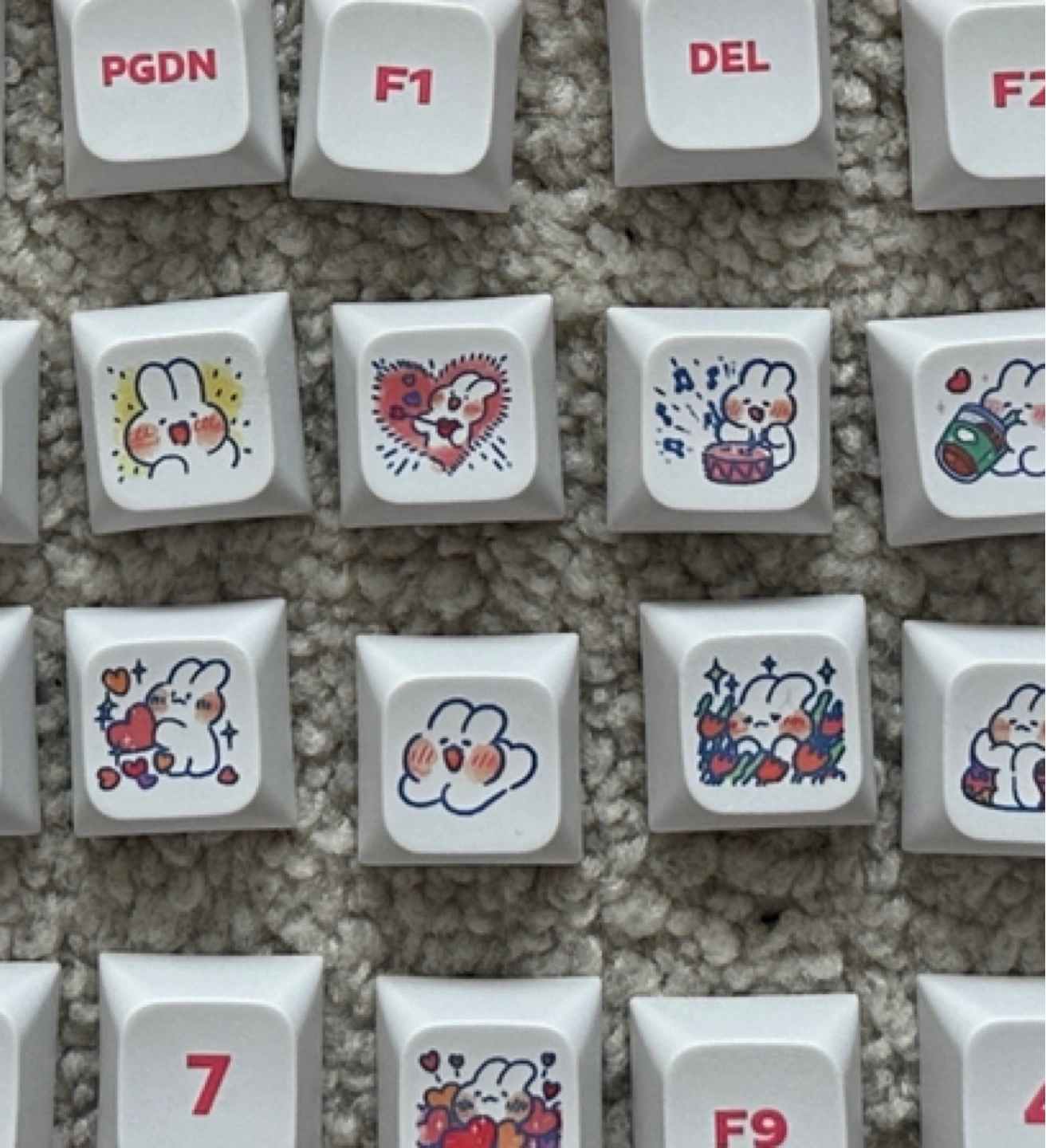 Selling a super cute set of custom keycaps! It has missing keys but theyre pretty versatile