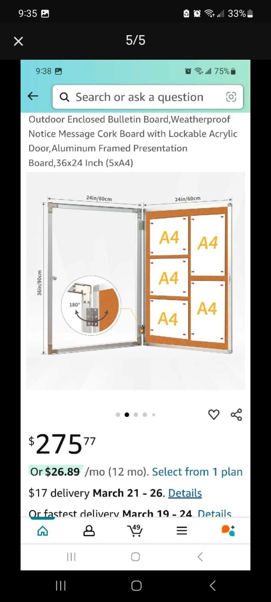 Looking to sell an outdoor enclosed bulletin board by Maxrieny. It's weatherproof and has a lockable acrylic door with an aluminum frame.