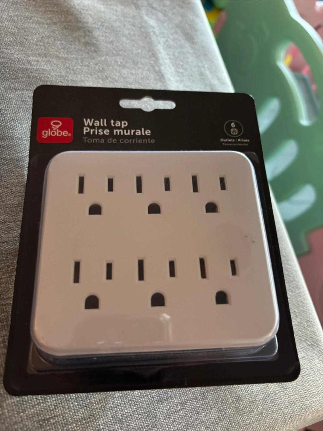 Selling a brand new Globe Electric wall tap with 6 outlets! Super handy for expanding your outlet space. It's still in its original packaging and ready to go!