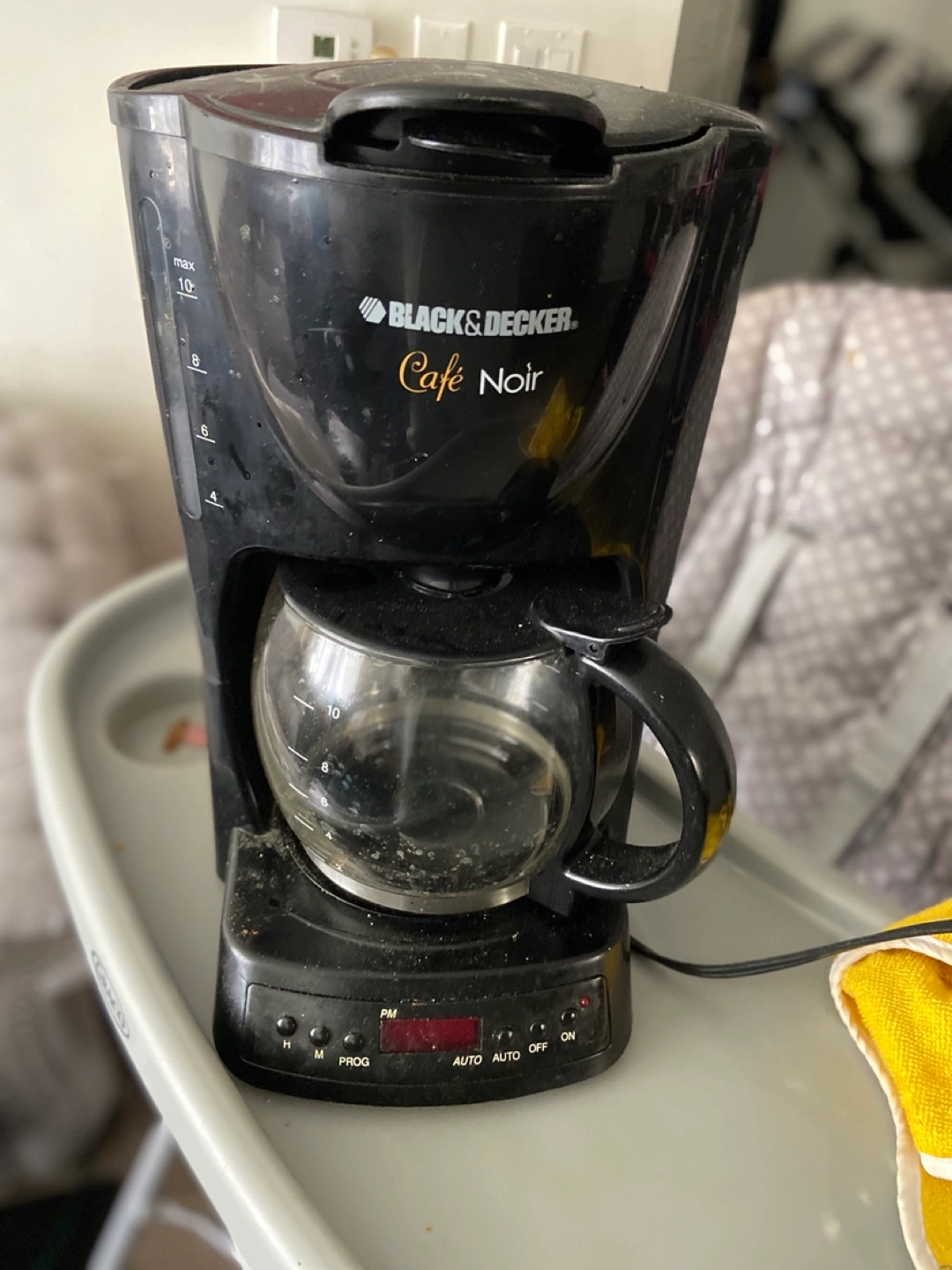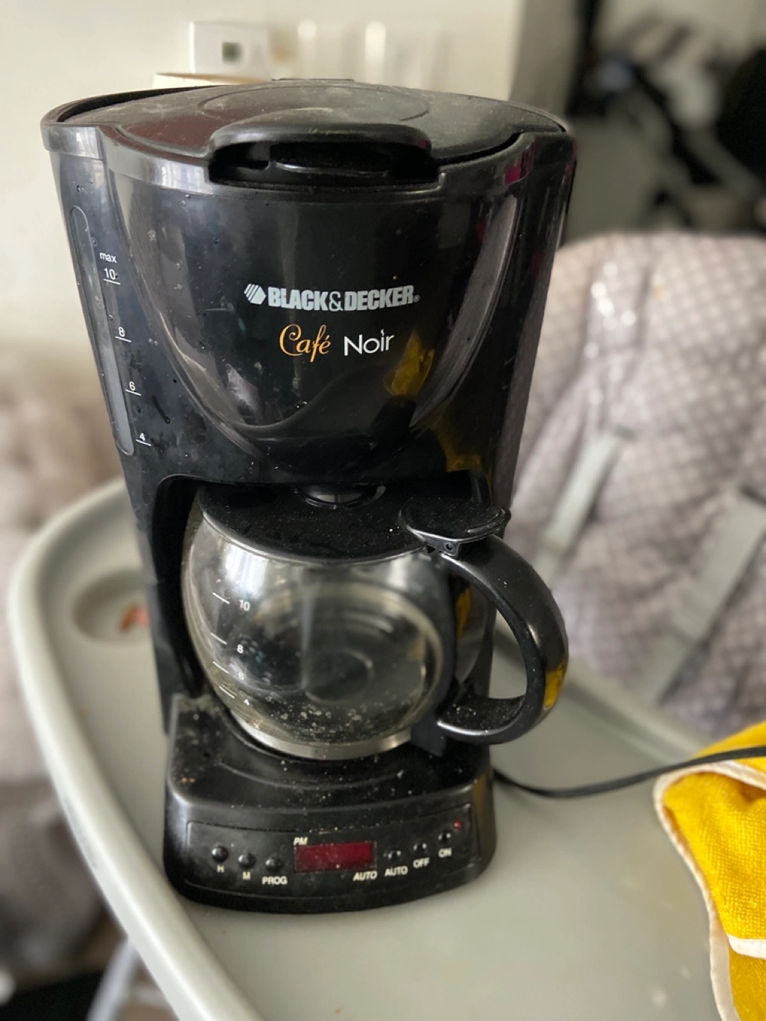 Black & Decker Café Noir coffee maker! It's in used condition, but still works great for brewing your morning coffee. It has a 10-cup capacity and a programmable function.