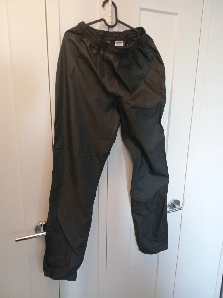 I'm selling a pair of black waterproof pants. They look to be in great condition and would be perfect for keeping dry on those wet days!