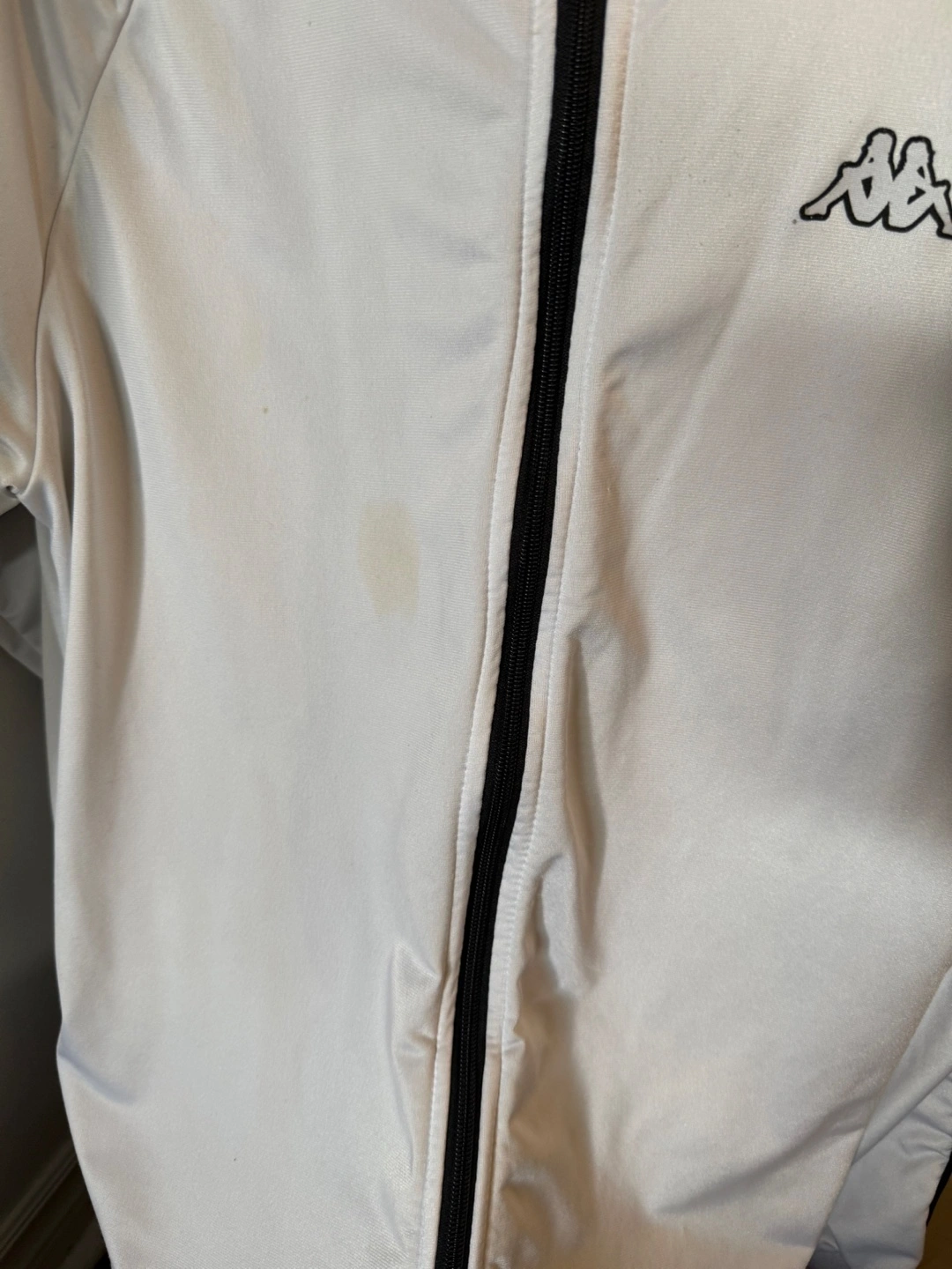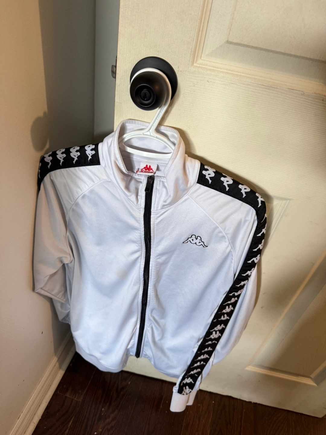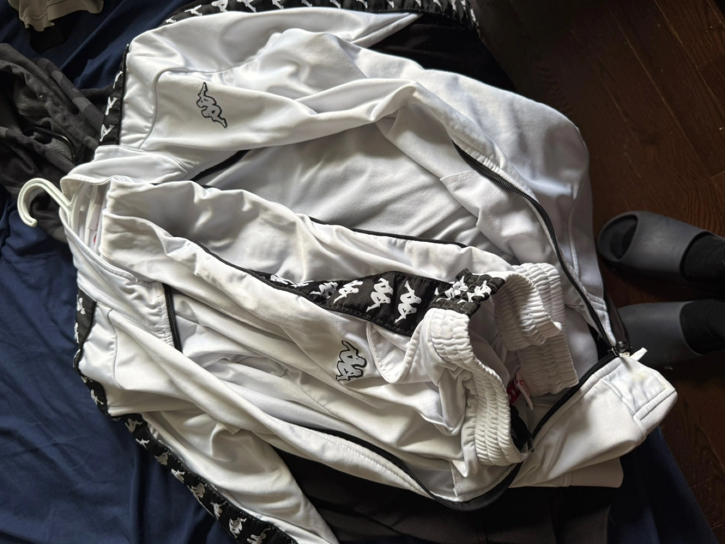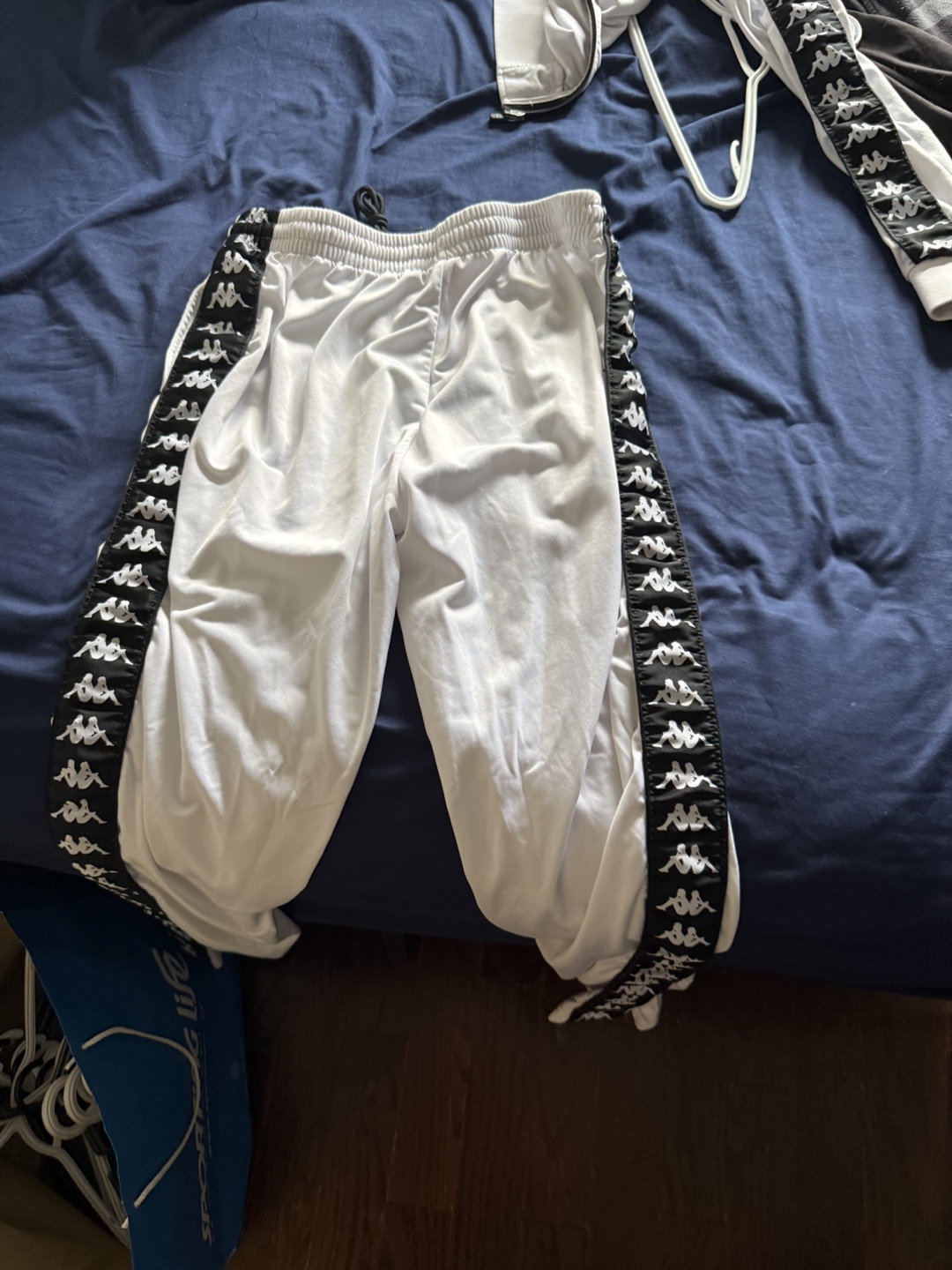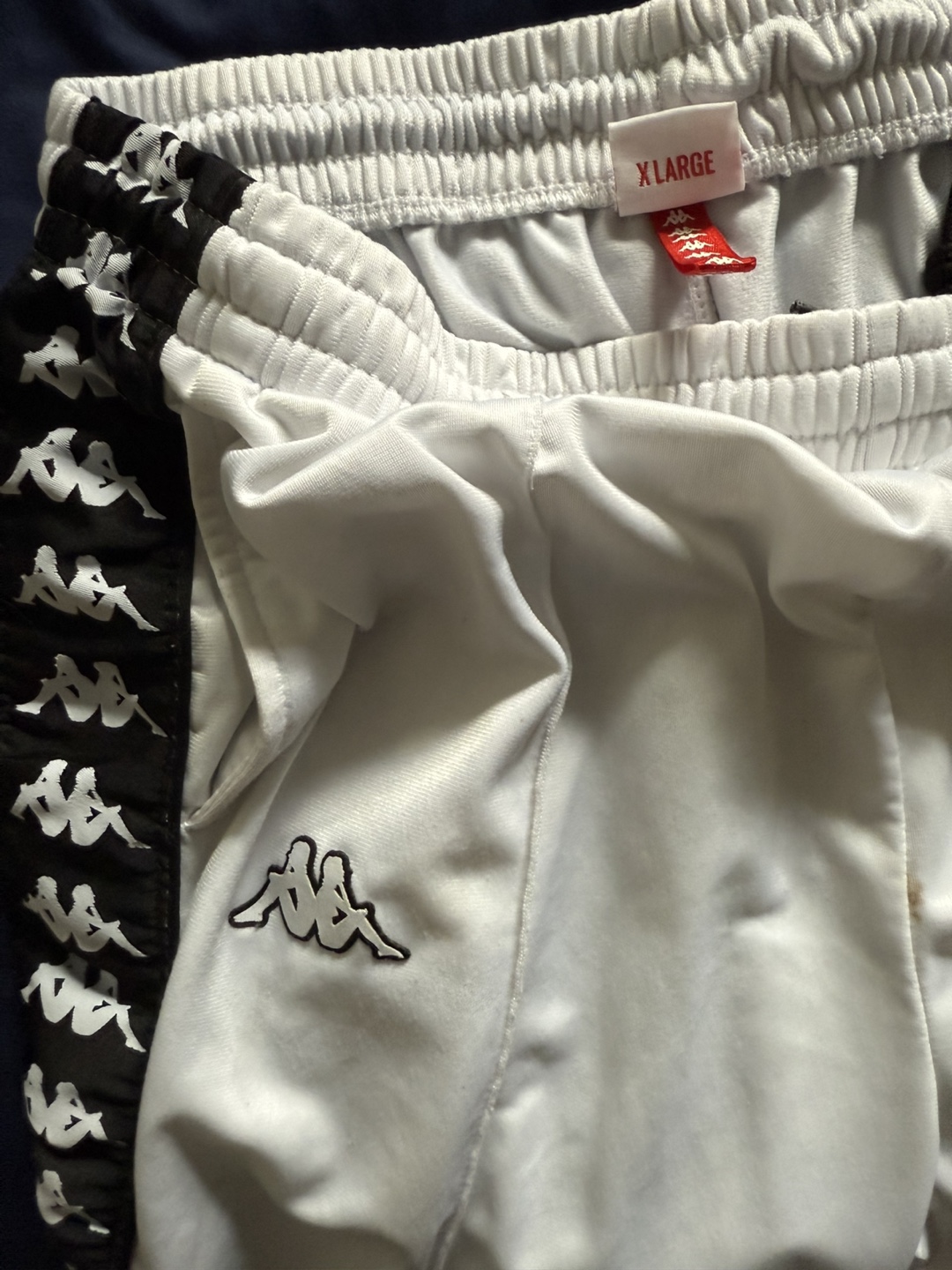 Selling a Kappa tracksuit in white, size XLarge. It's in great shape and ready for a new home! The classic Kappa logo is featured on the sleeves and pants.