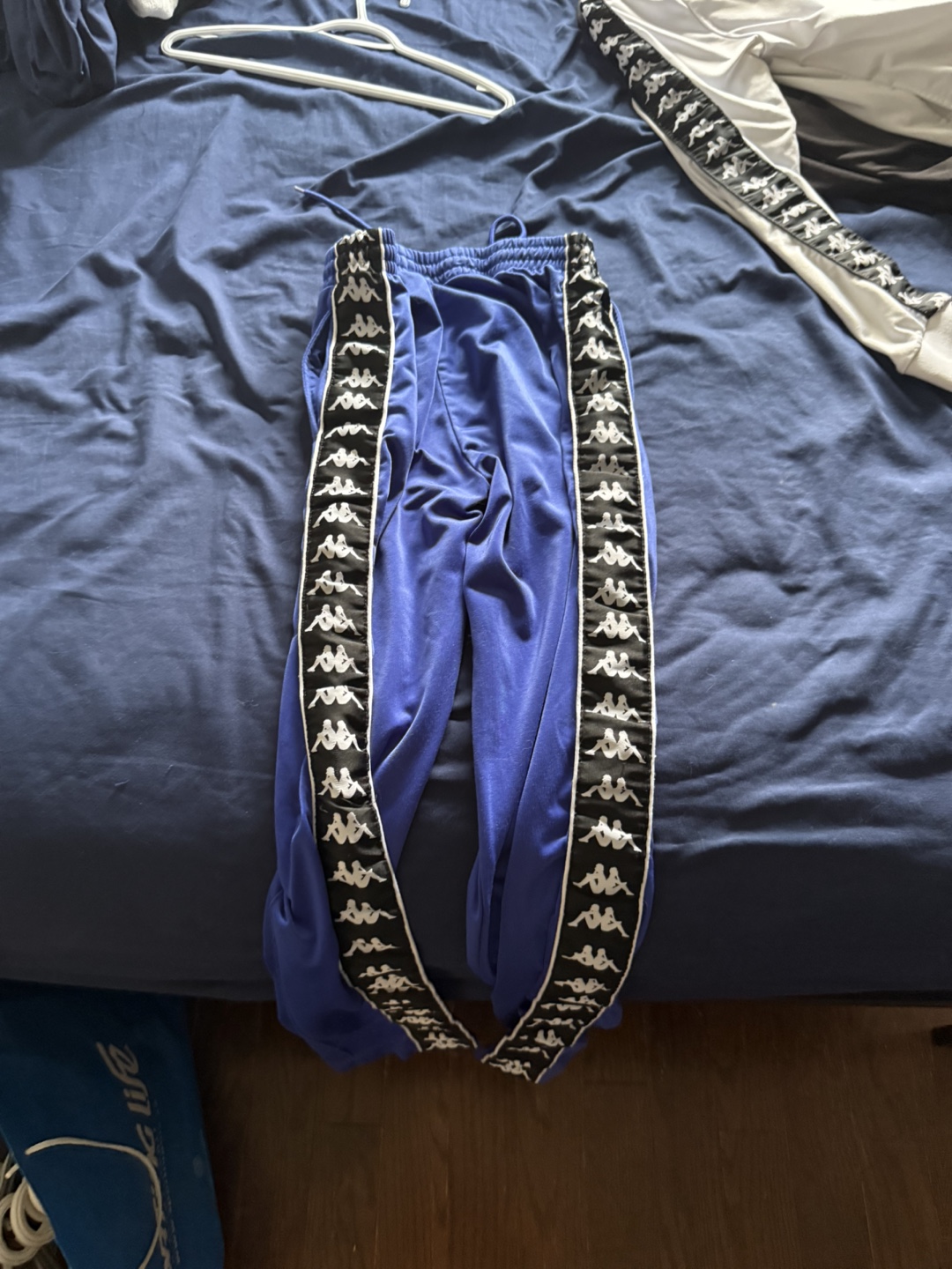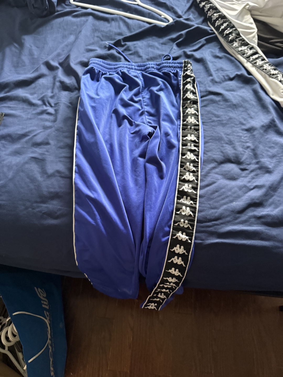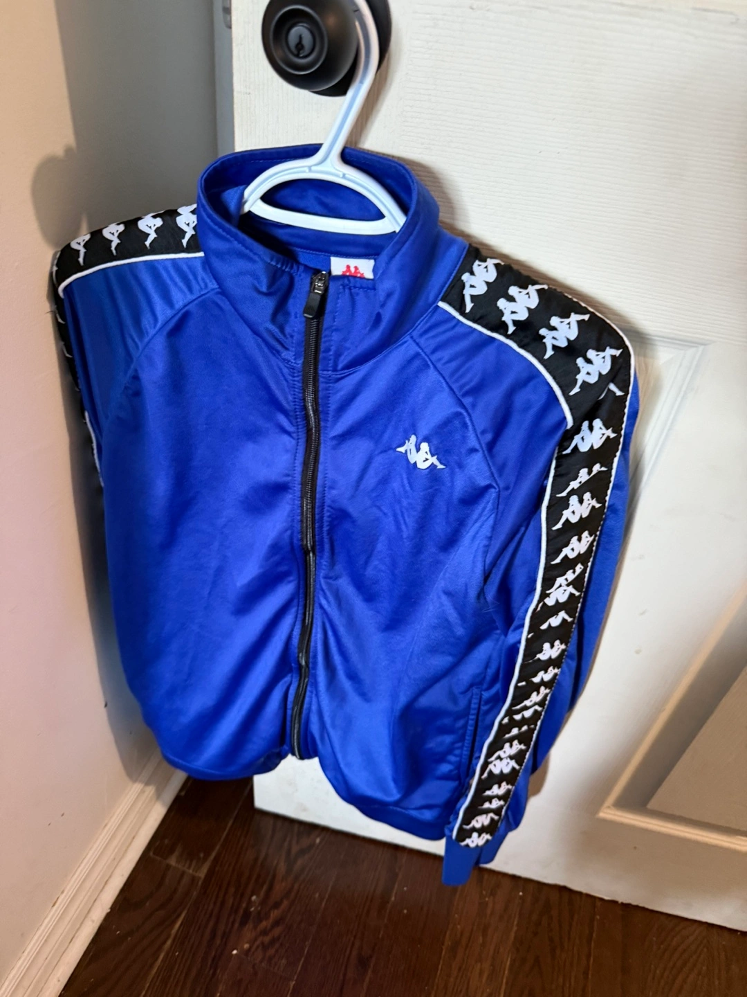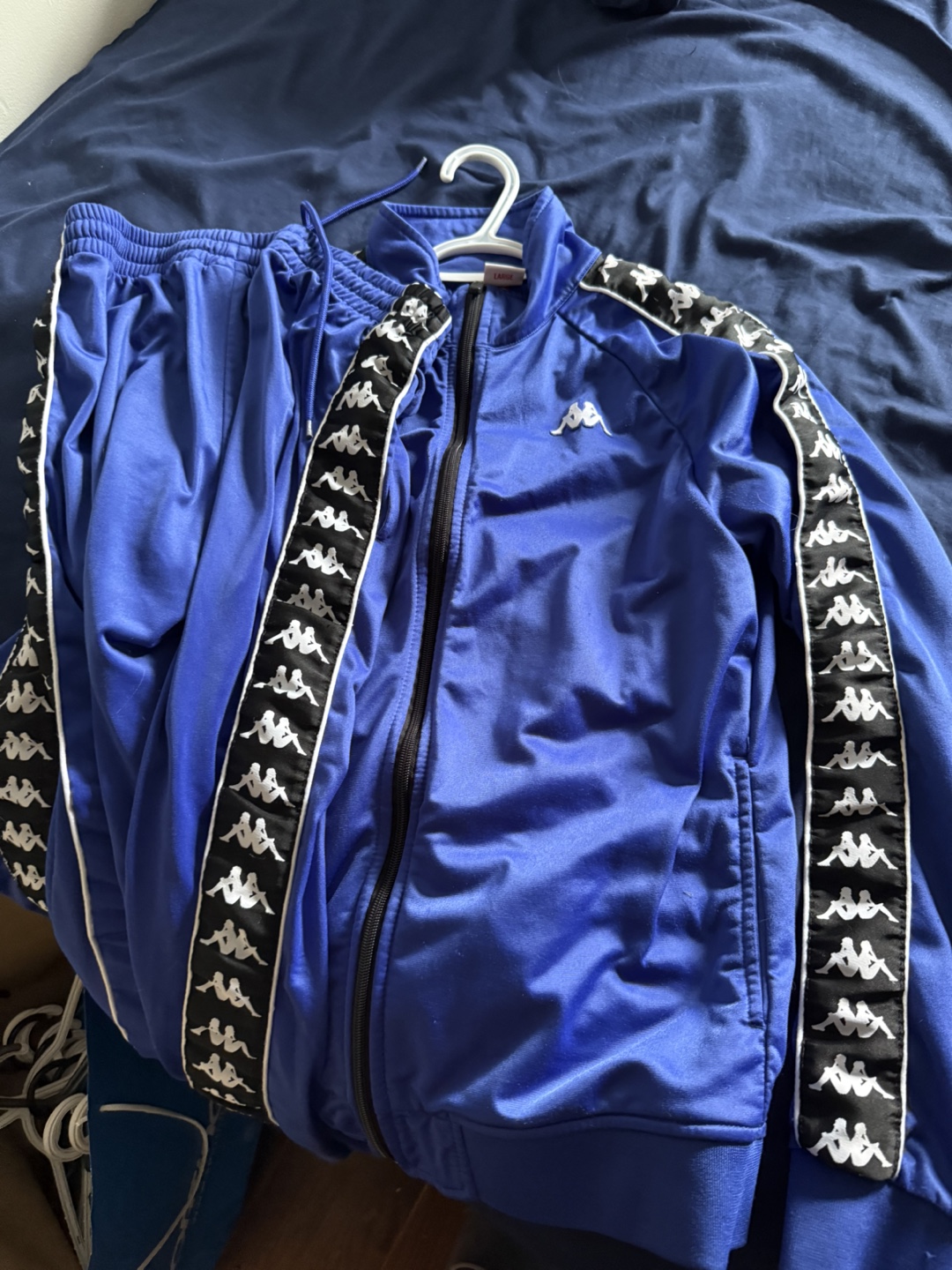 Selling a Kappa tracksuit in blue! It features the iconic Kappa logo along the sides of both the jacket and pants. Great for casual wear or hitting the gym!