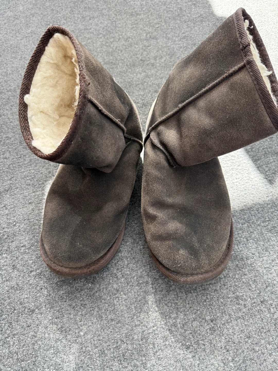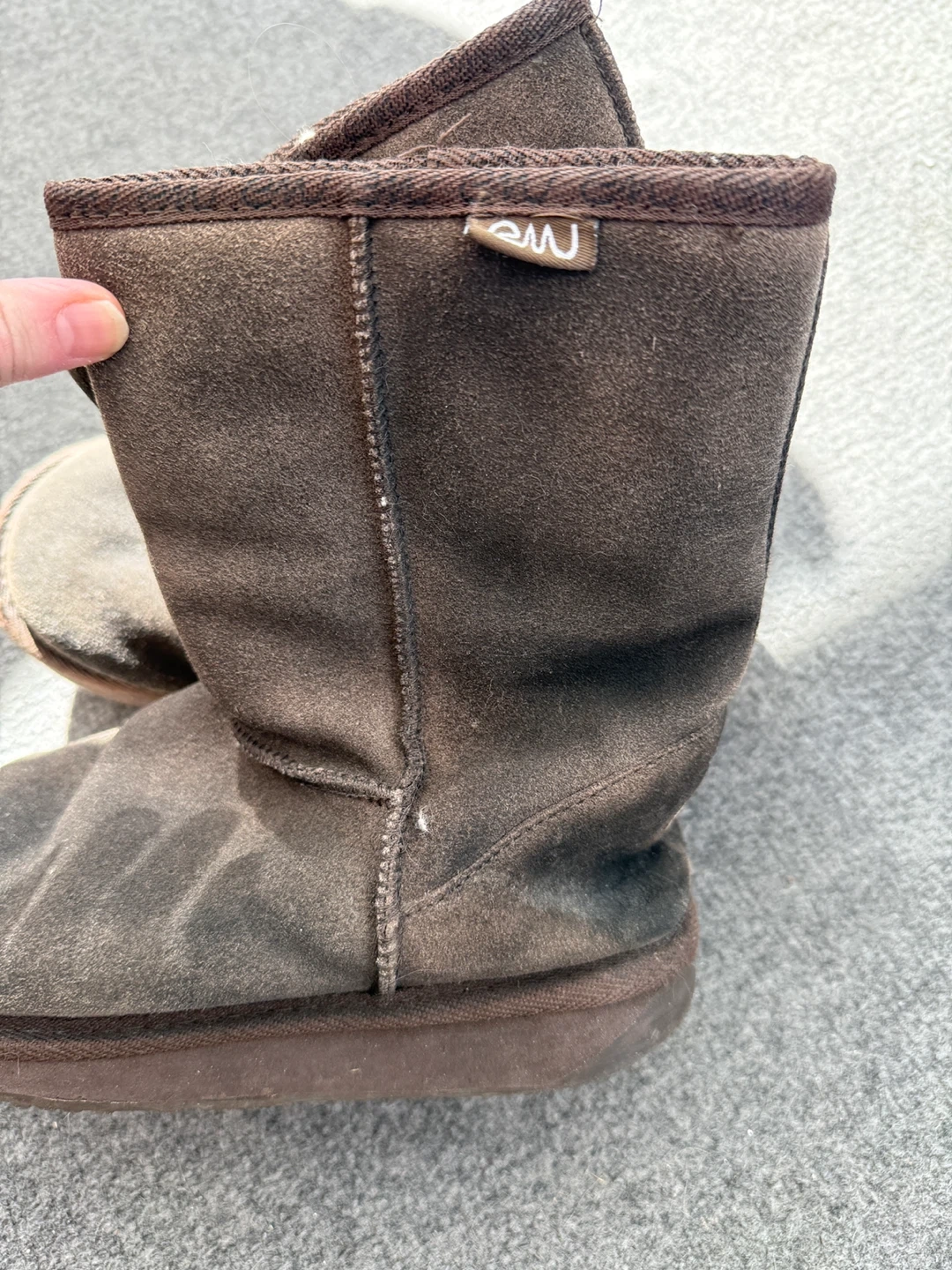 These Emu Australia boots feature a cozy wool lining and a suede upper. They're a womenβs size 8 and perfect for keeping feet warm. TPR sole.