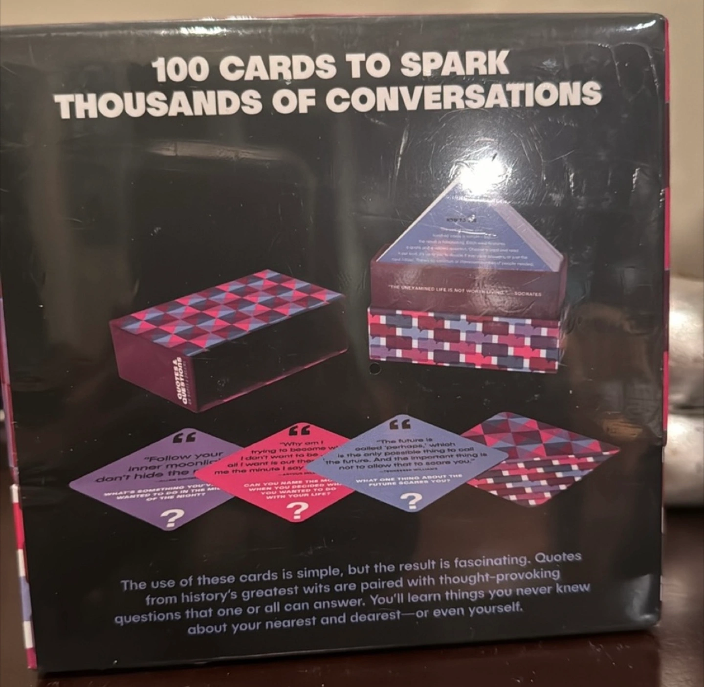 Looking to spark some conversations? This Knock Knock Quotes & Questions card deck is perfect! It's on Hopes & Dreams and includes 100 talk-provoking cards. The use of these cards is simple, but the result is fascinating. Quotes from history's greatest wits are paired with thought-provoking questions that one or all can answer. You'll learn things you never knew about your nearest and dearest—or even yourself