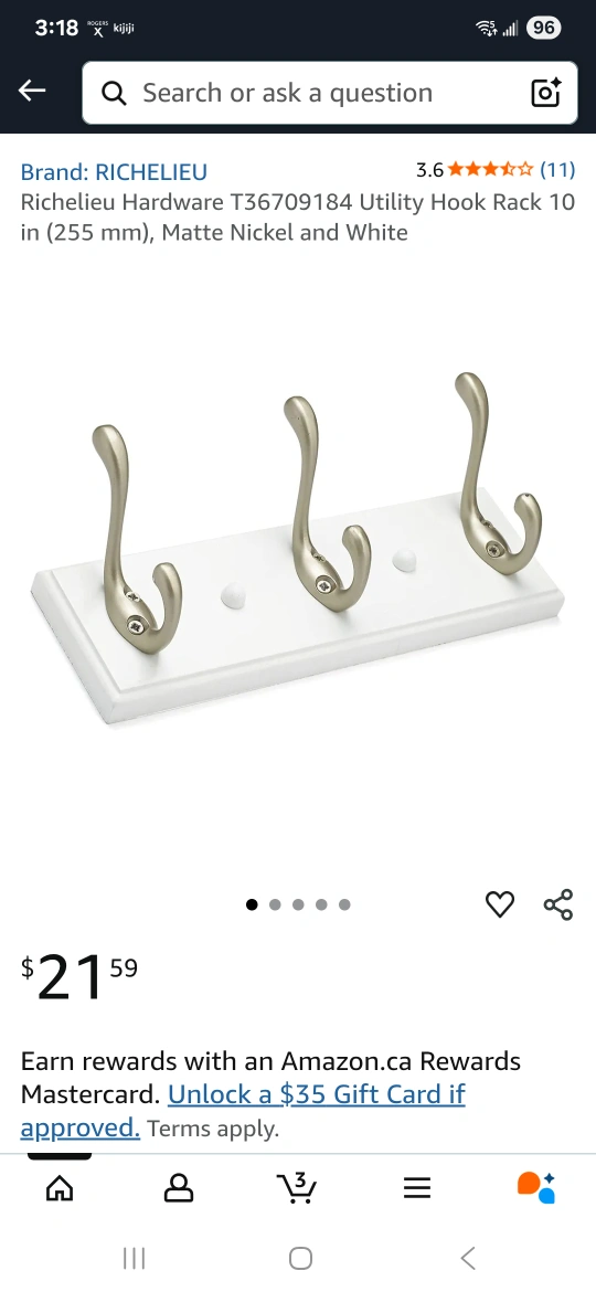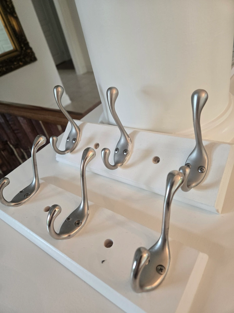 Selling a Richelieu utility hook rack in matte nickel and white. It's a great addition to any home! The rack is 10 inches (255 mm) in length and features a sleek design. Retail price: $21.59 2 Racks each $14