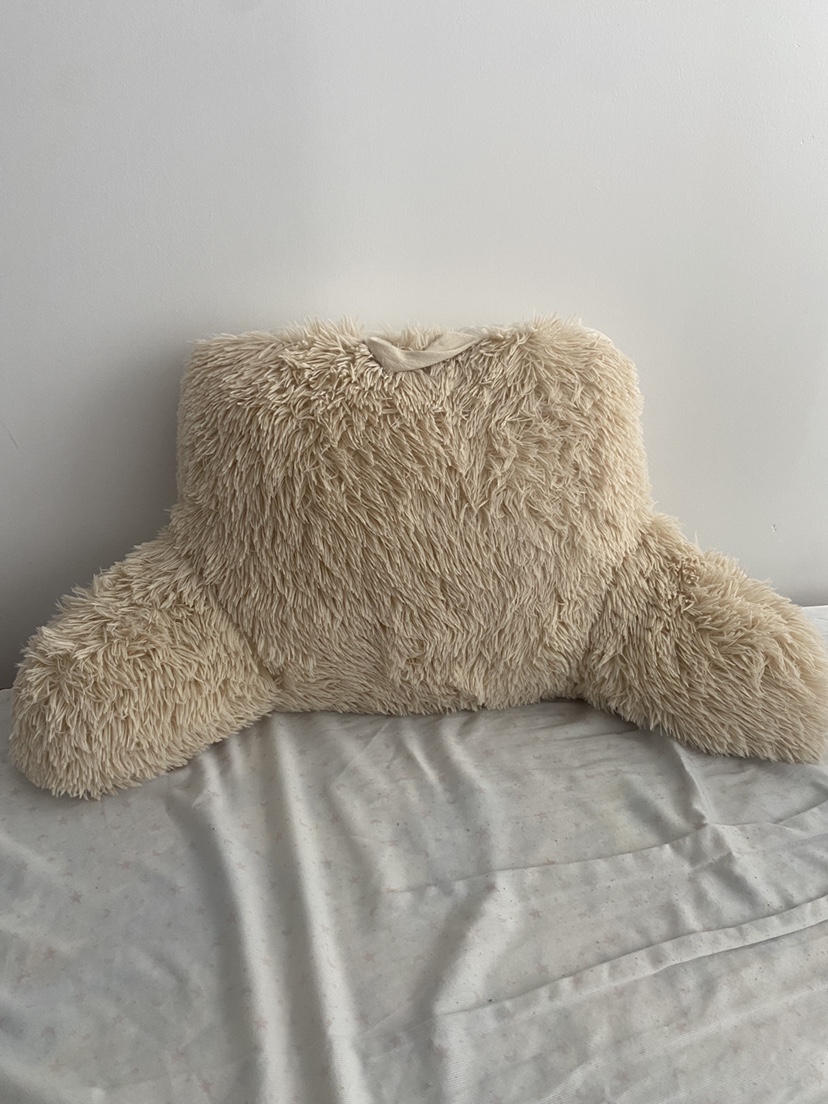 Selling a fuzzy bed rest pillow! It's in great condition and perfect for reading or watching TV in bed. It is a light beige colour and very soft.