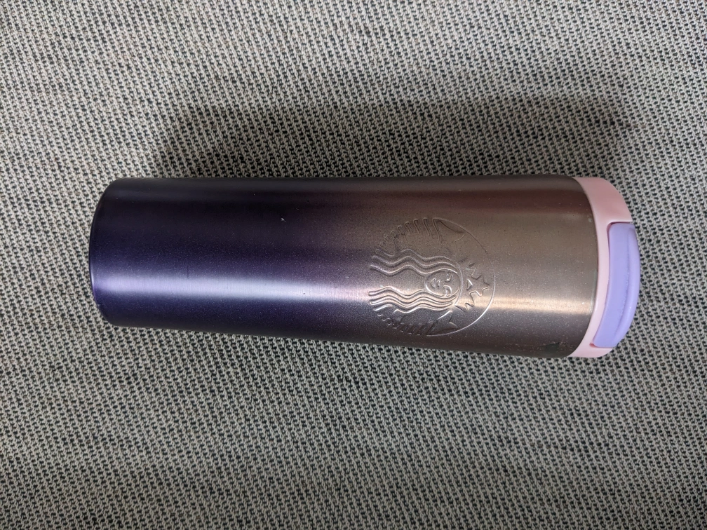 Selling a Starbucks tumbler! It's in ok condition and ready for your favourite beverages. Perfect for keeping your drinks hot or cold on the go. It has a nice colour gradient with the Starbucks logo on the side