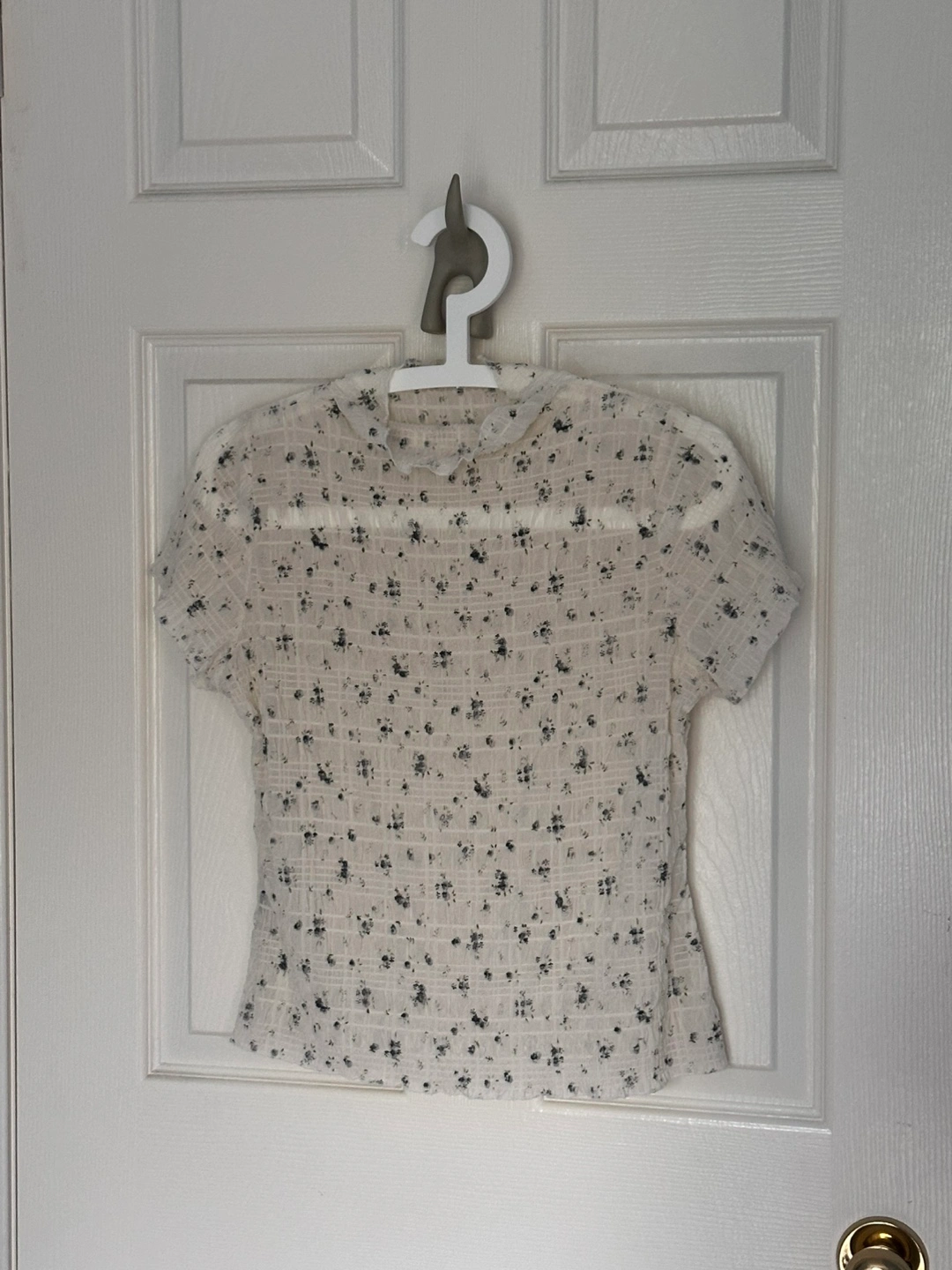 A cute floral print top from Japan! It's in great condition and ready for a new home. The material is lightweight and breathable, perfect for warmer weather. It features a subtle texture and a flattering fit.