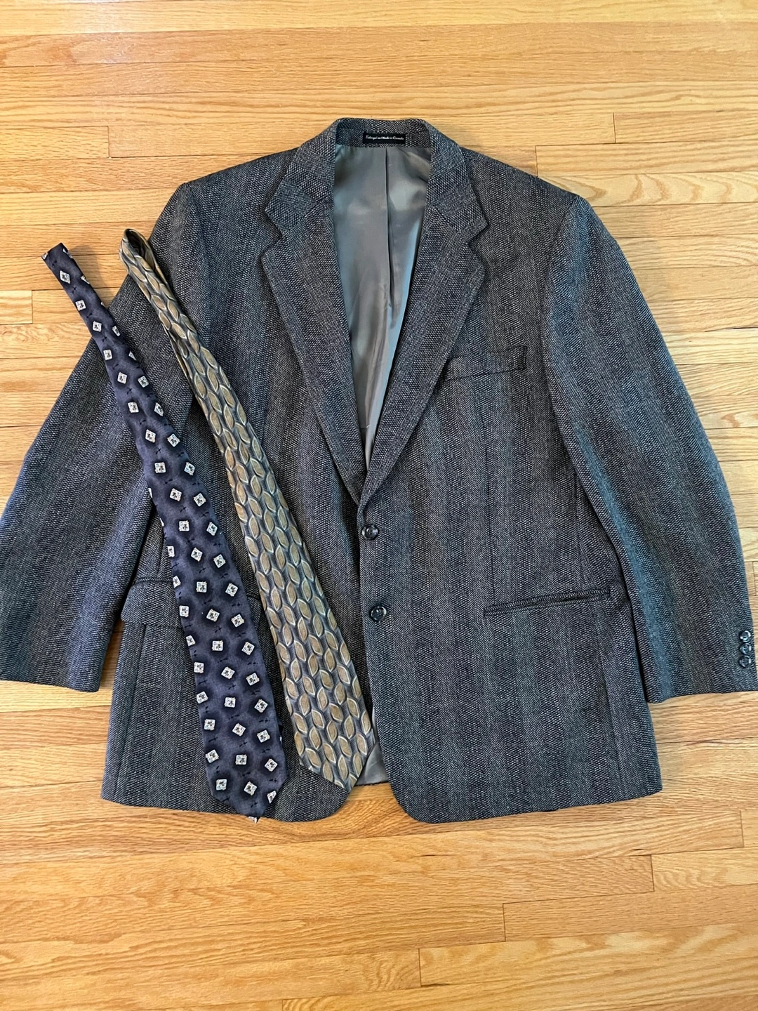 Selling a blazer and two ties. Olive green/beige brown tweed. 100% virgin wool. Excellent condition, cheaper than thrift shop. Items come from a pet and smoke free home. Port Union in 401 area for porch pick up
