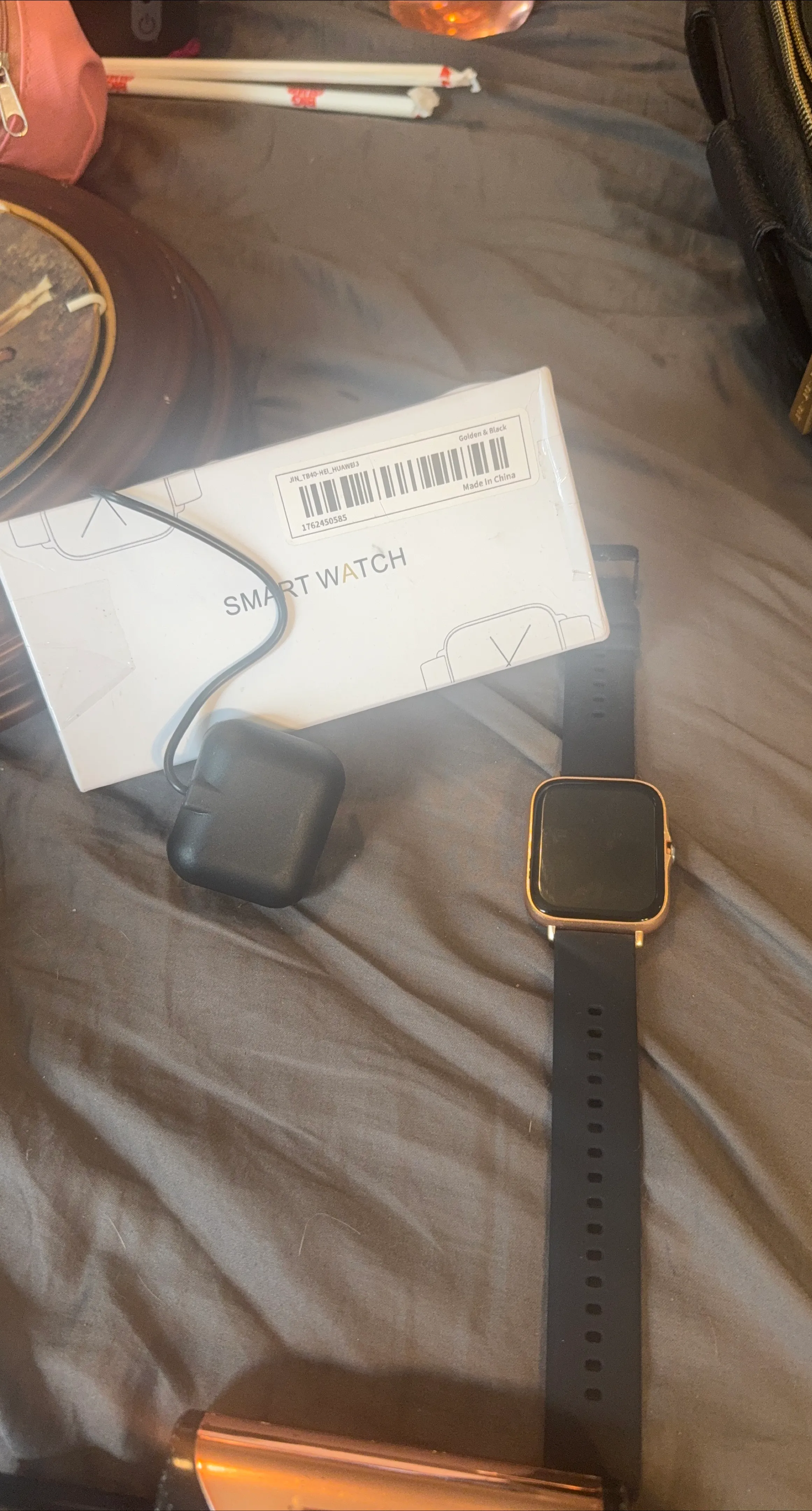 Selling a brand new in box smart watch in golden (rose gold) and black! Never used. It comes with its charger and original box. NOT APPLE! Great starter for kids to determine readiness.