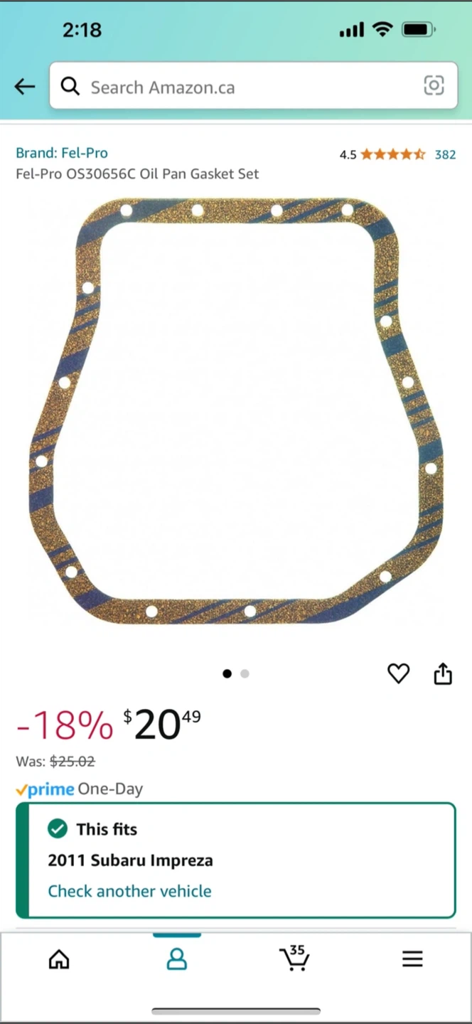 Fel-Pro OS30656C oil pan gasket set. It fits a 2011 Subaru Impreza. Originally bought for $25.02 NEW. NEVER OPEN