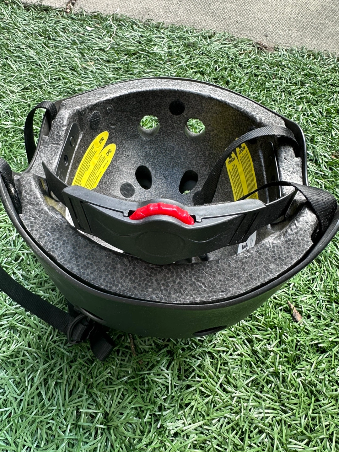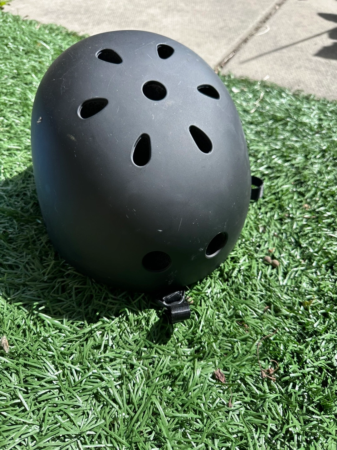 Selling a black adult bike helmet. It's in great condition and ready for your next ride! Perfect for staying safe while cycling around town or hitting the trails