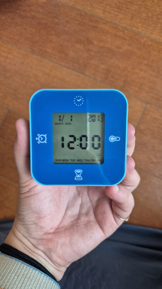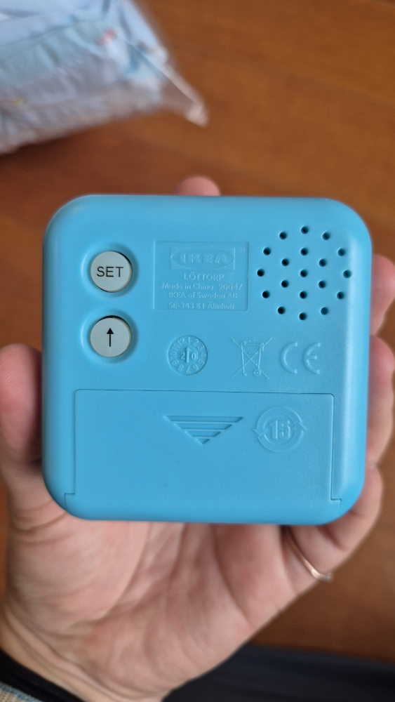 Selling a cute blue IKEA LÖTTORP digital alarm clock! It's in great shape and ready to help you keep track of time. It displays the temperature and has a timer function too. You can set it up pretty easily with the buttons in the back. It runs on a battery.