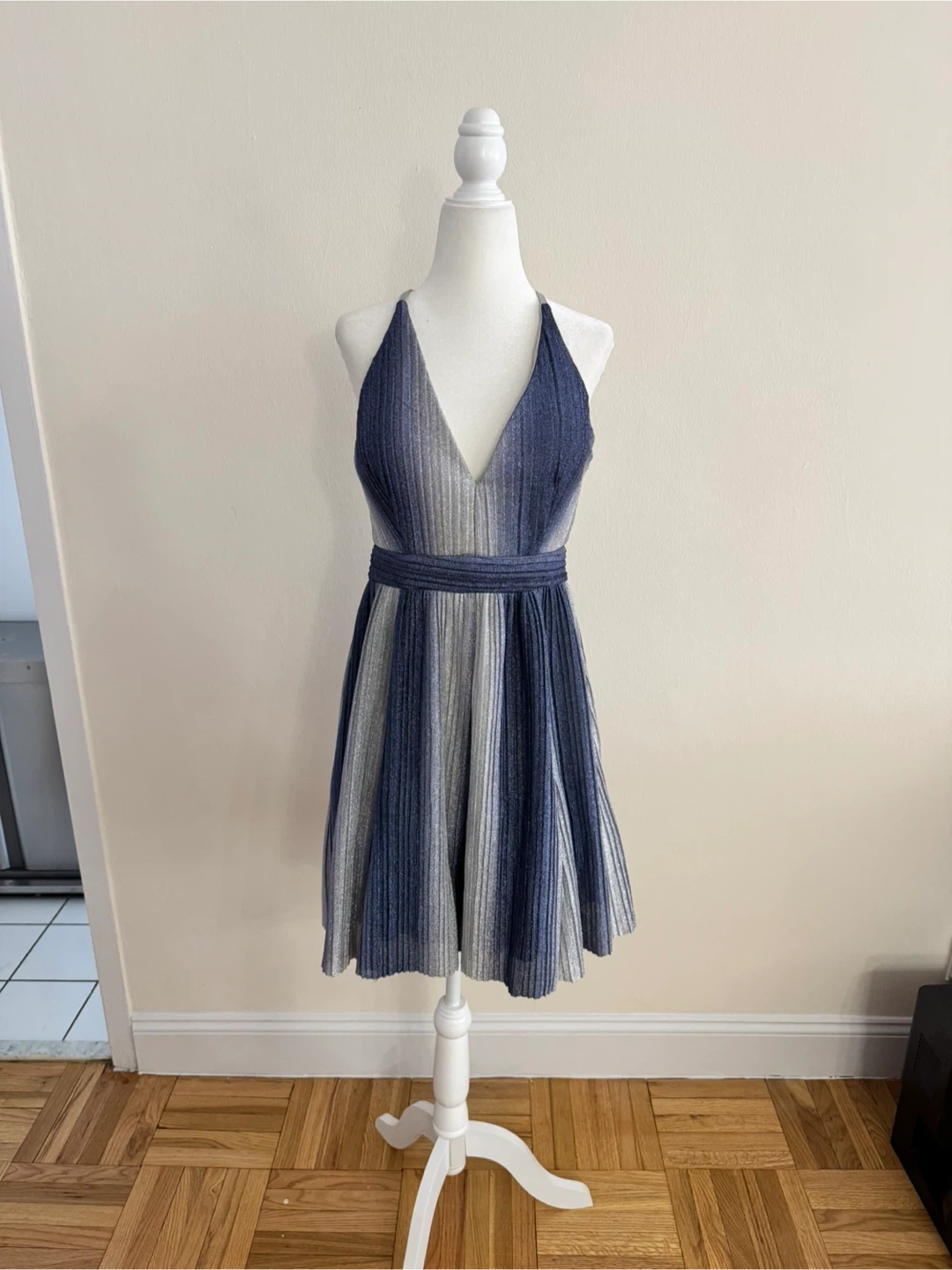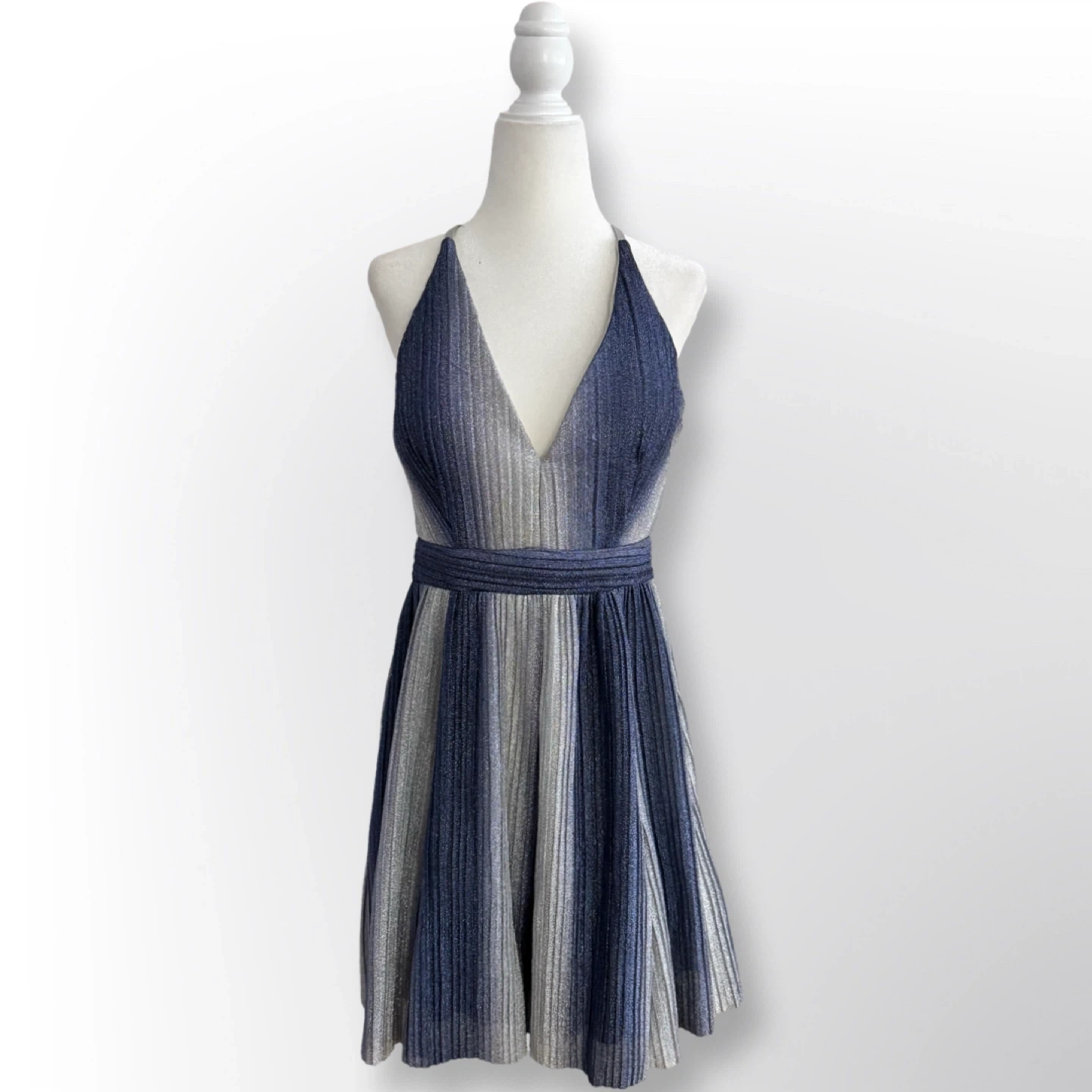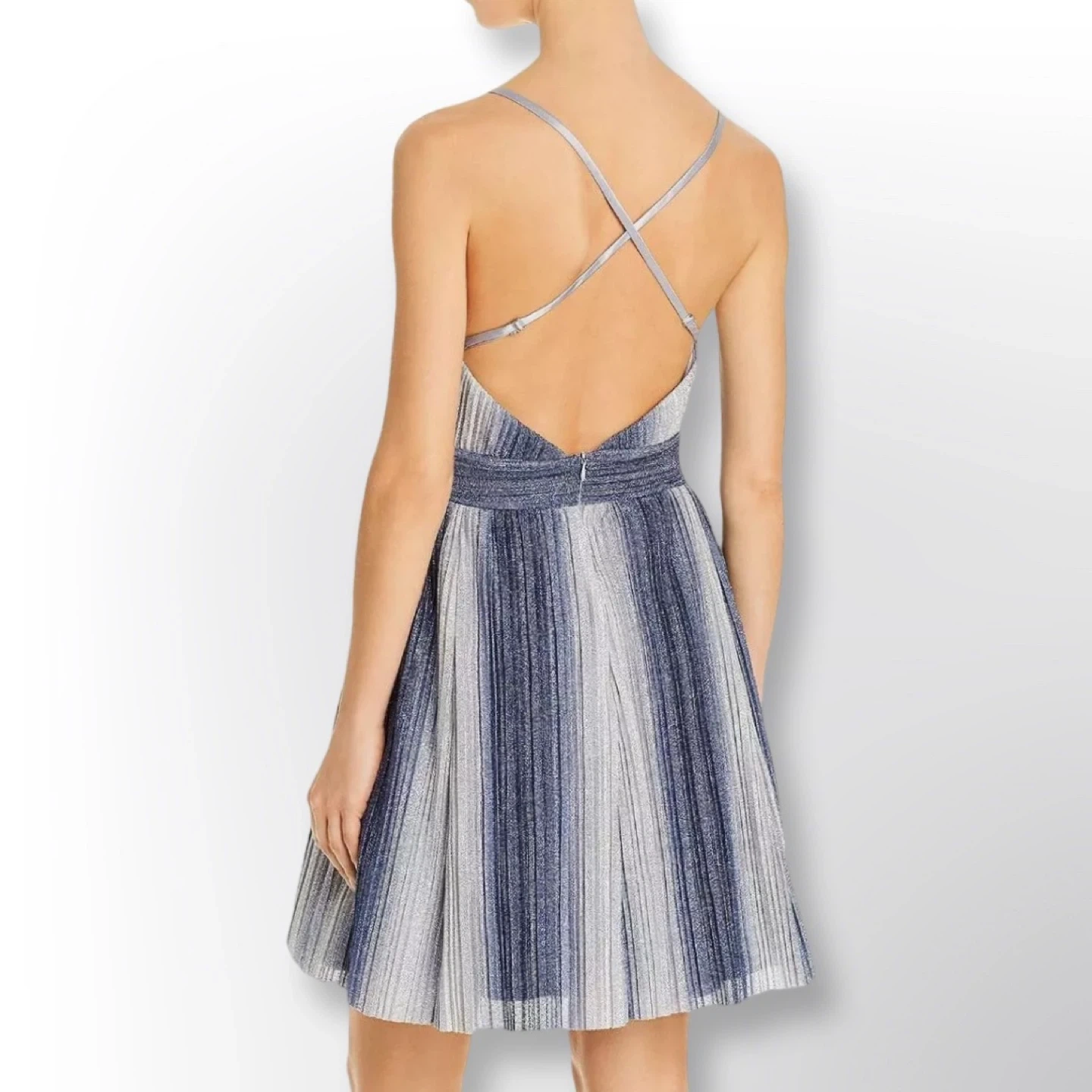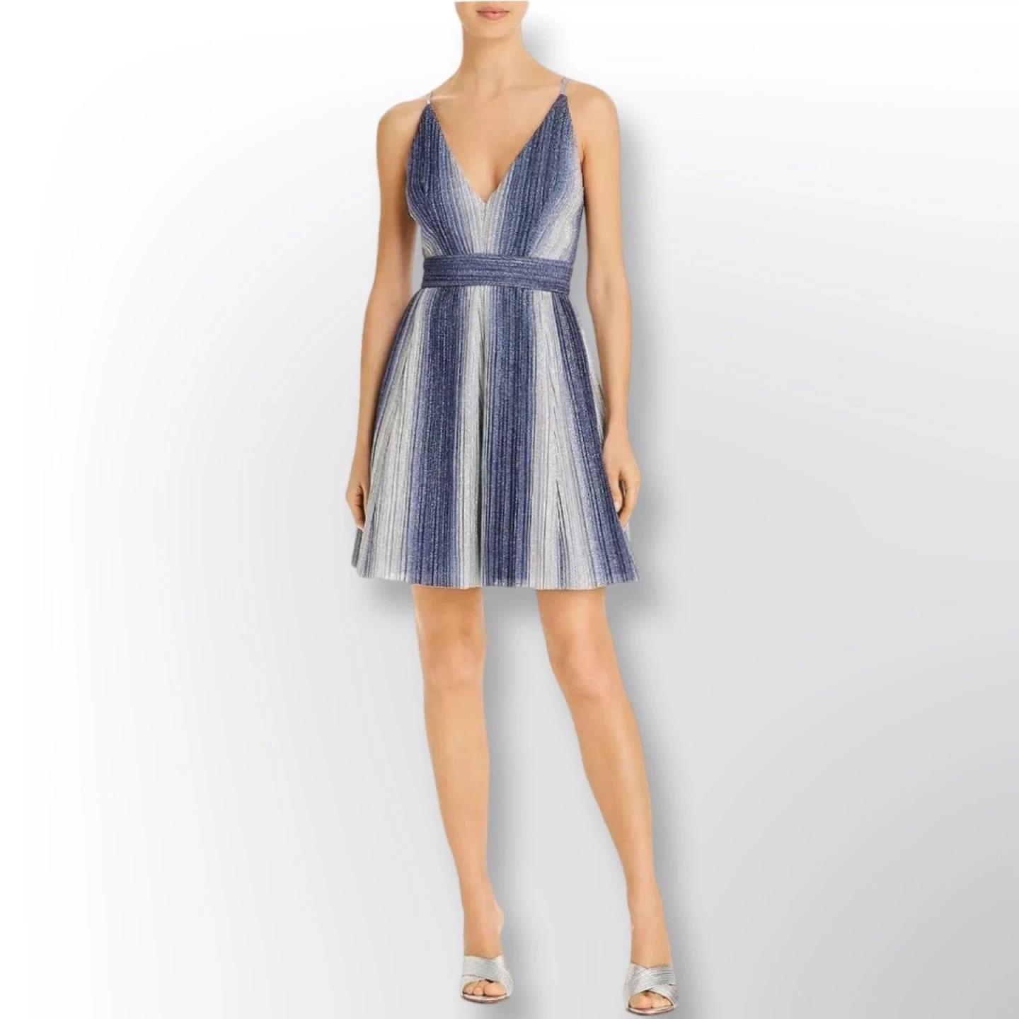 New With Tags! AQUA Metallic-Stripe Fit & Flare Dress | Size 8