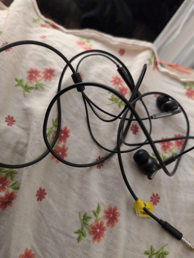Selling a black wired earbuds. They're in good condition and ready for a new home!