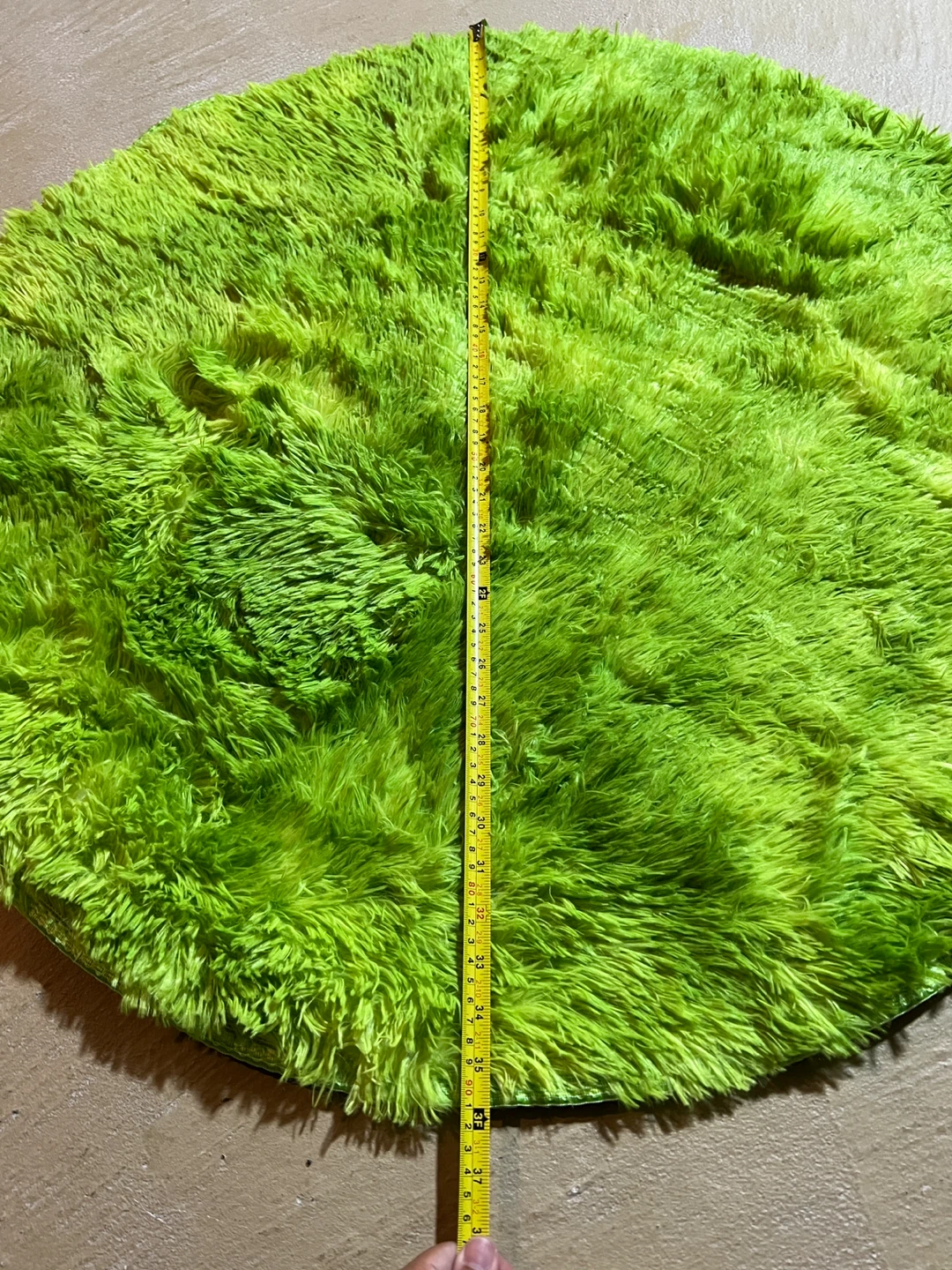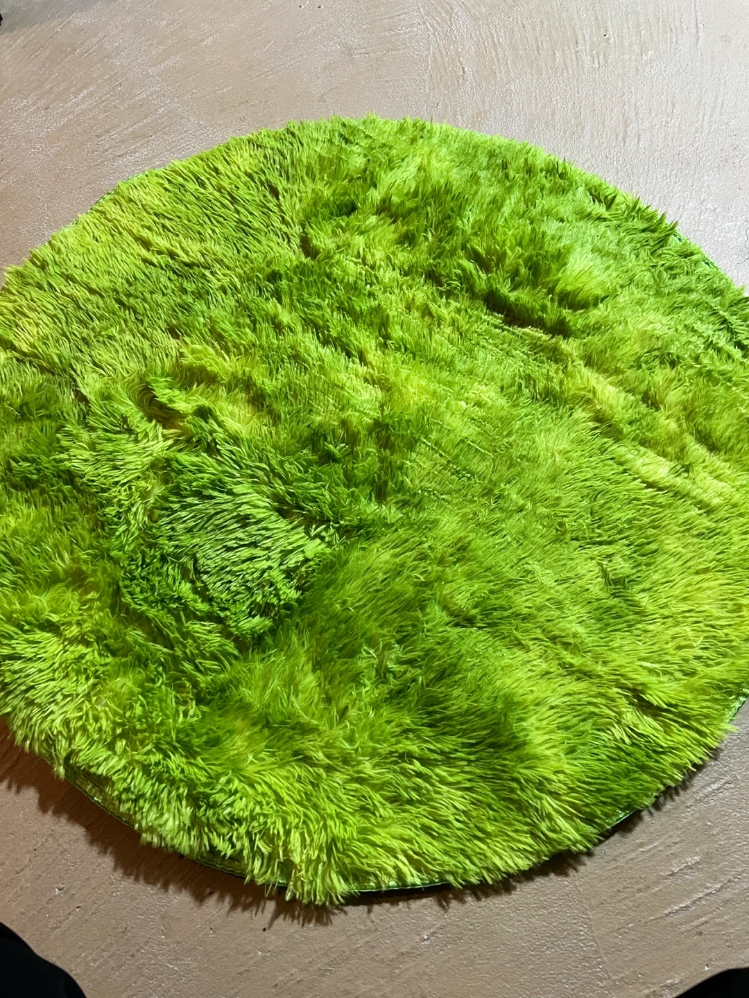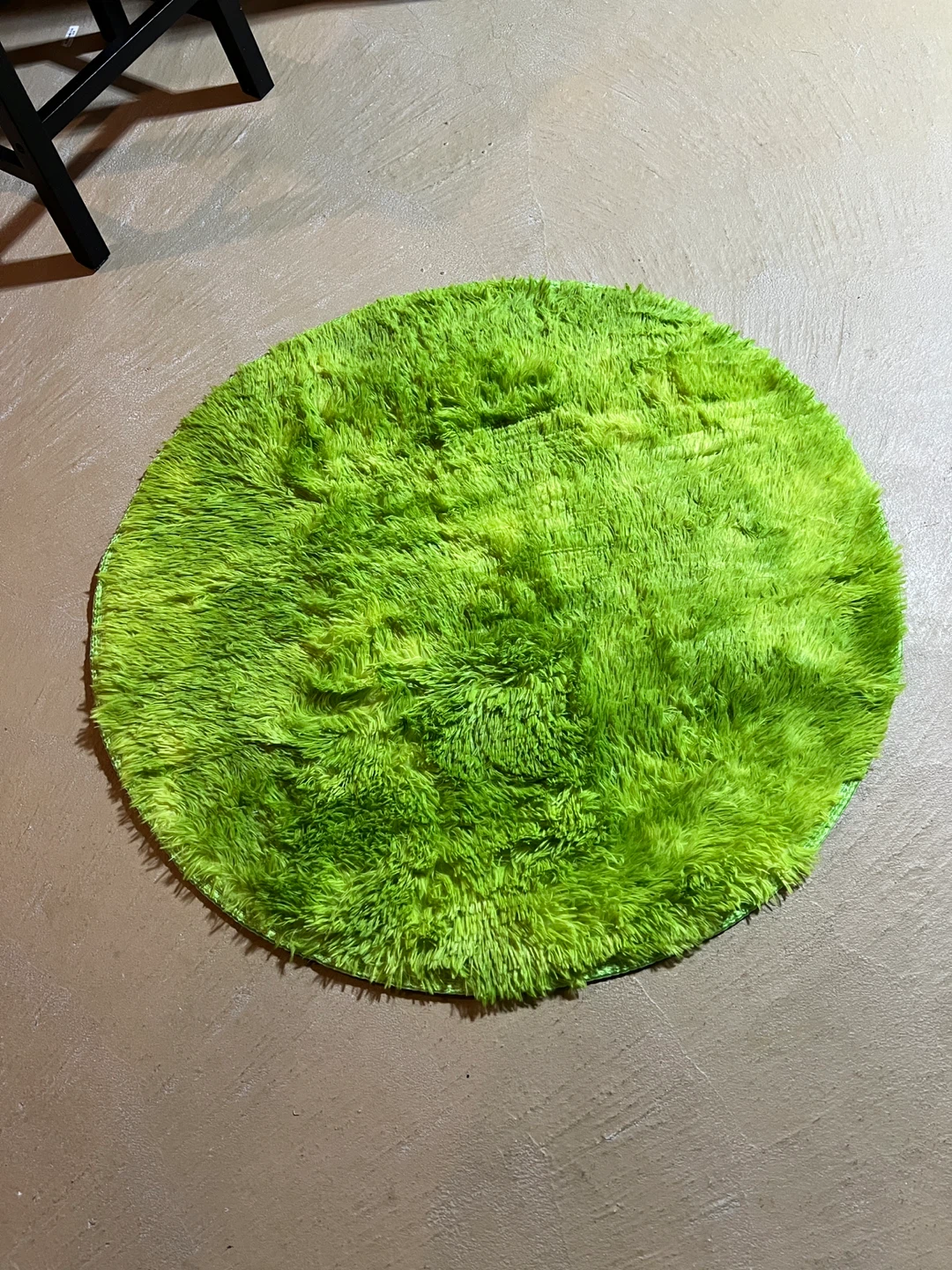 Selling a vibrant green round shag rug! It's super soft and adds a fun pop of colour to any room. Approximately 36 inches in diameter, perfect for a small space or accent piece