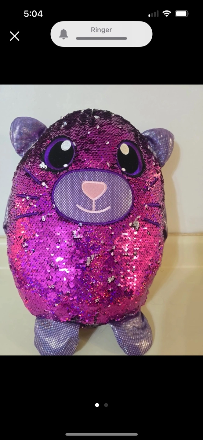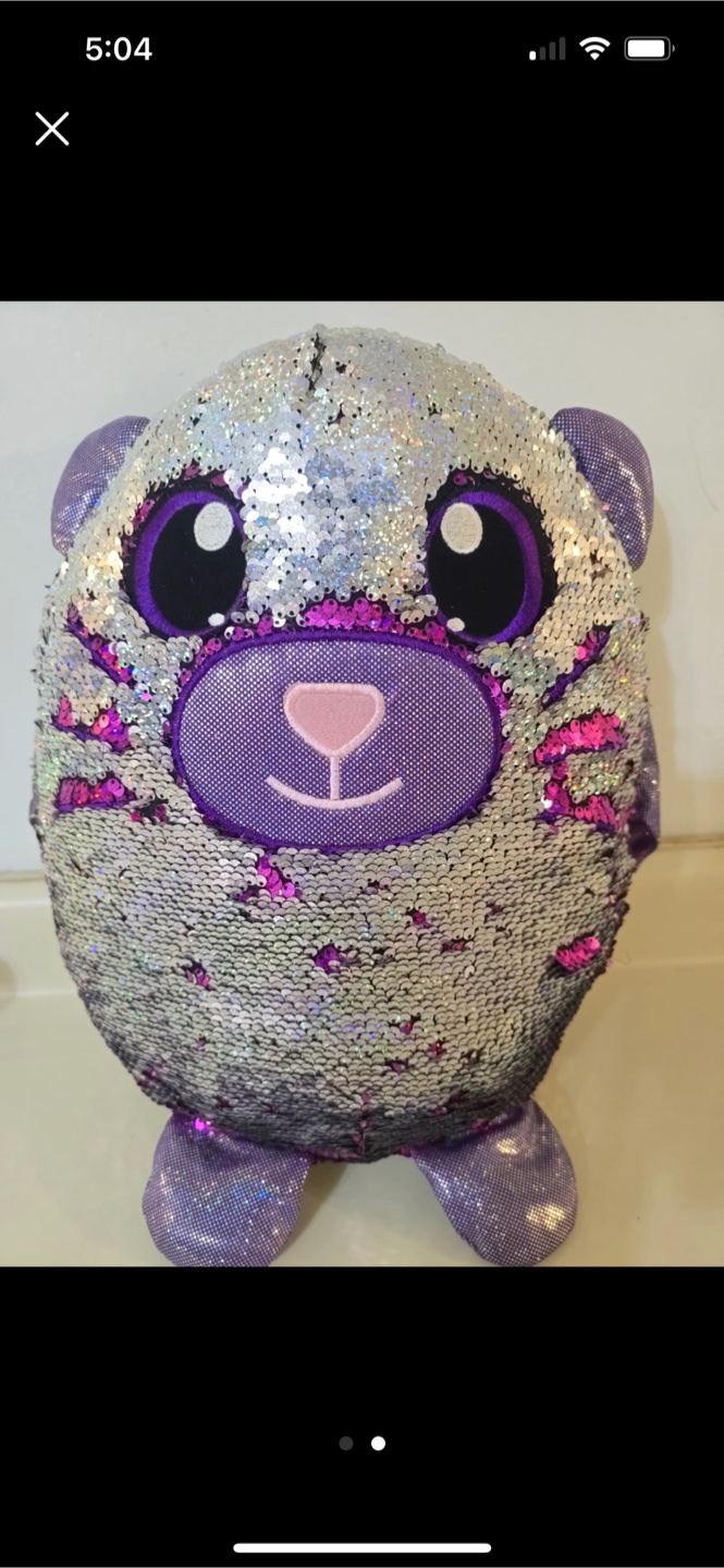 A cute sequin plush toy that changes colour when you brush the sequins! It's in great condition and ready for a new home